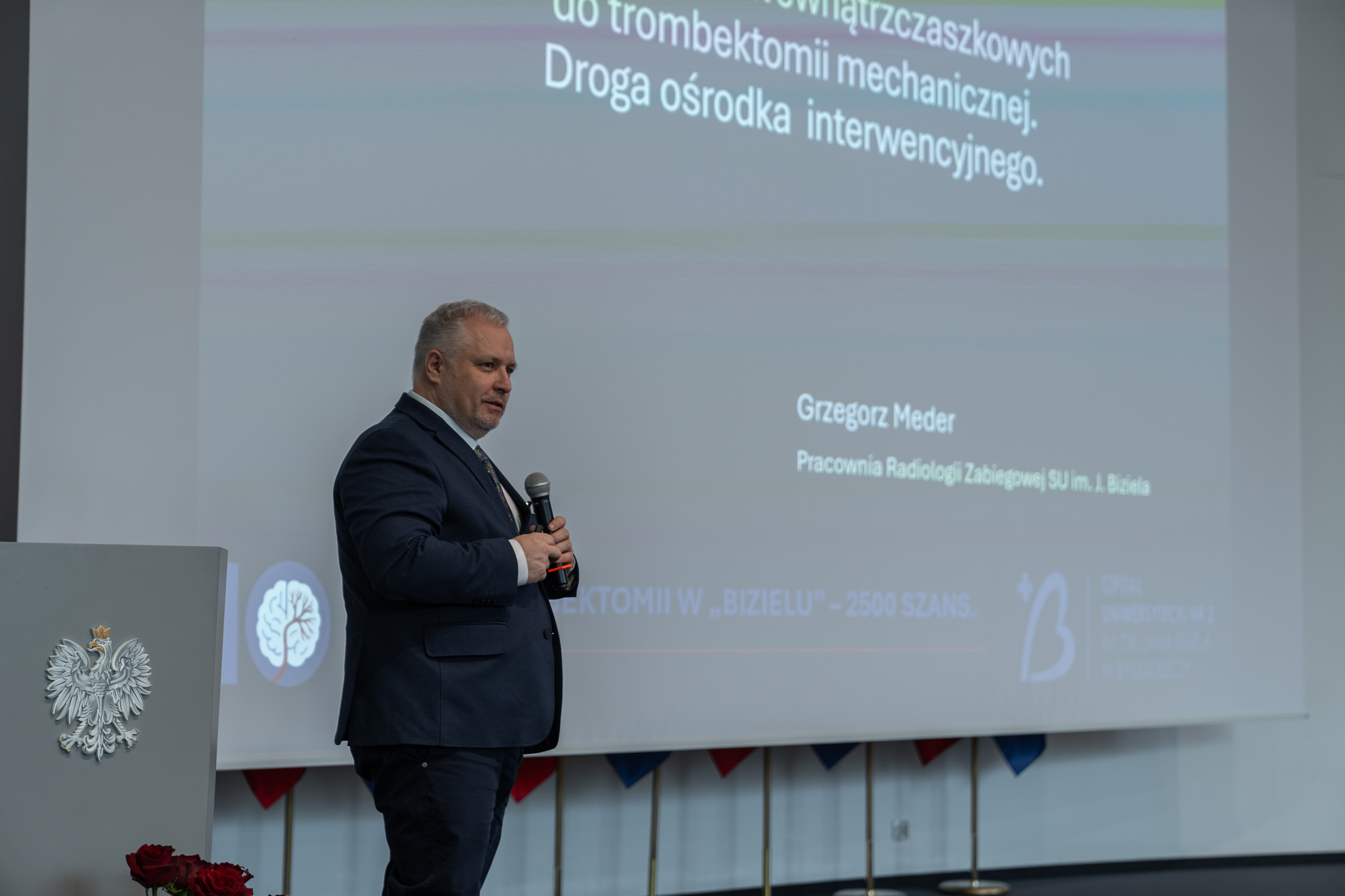 10 lat trombektomii to nie tylko sukces technologiczny i organizacyjny. To przede wszystkim sukces ludzi, którzy każdego dnia wybierają odpowiedzialność za drugiego człowieka. Jestem ogromnie dumna, że mogę tu dzisiaj stać z Państwem jako dyrektor szpitala, który tworzą ludzie z pasją, z kompetencjami i przede wszystkim z wielkim sercem. Dziękuję Państwu za wszystko co robicie, za profesjonalizm, za zaangażowanie i za tę walkę.