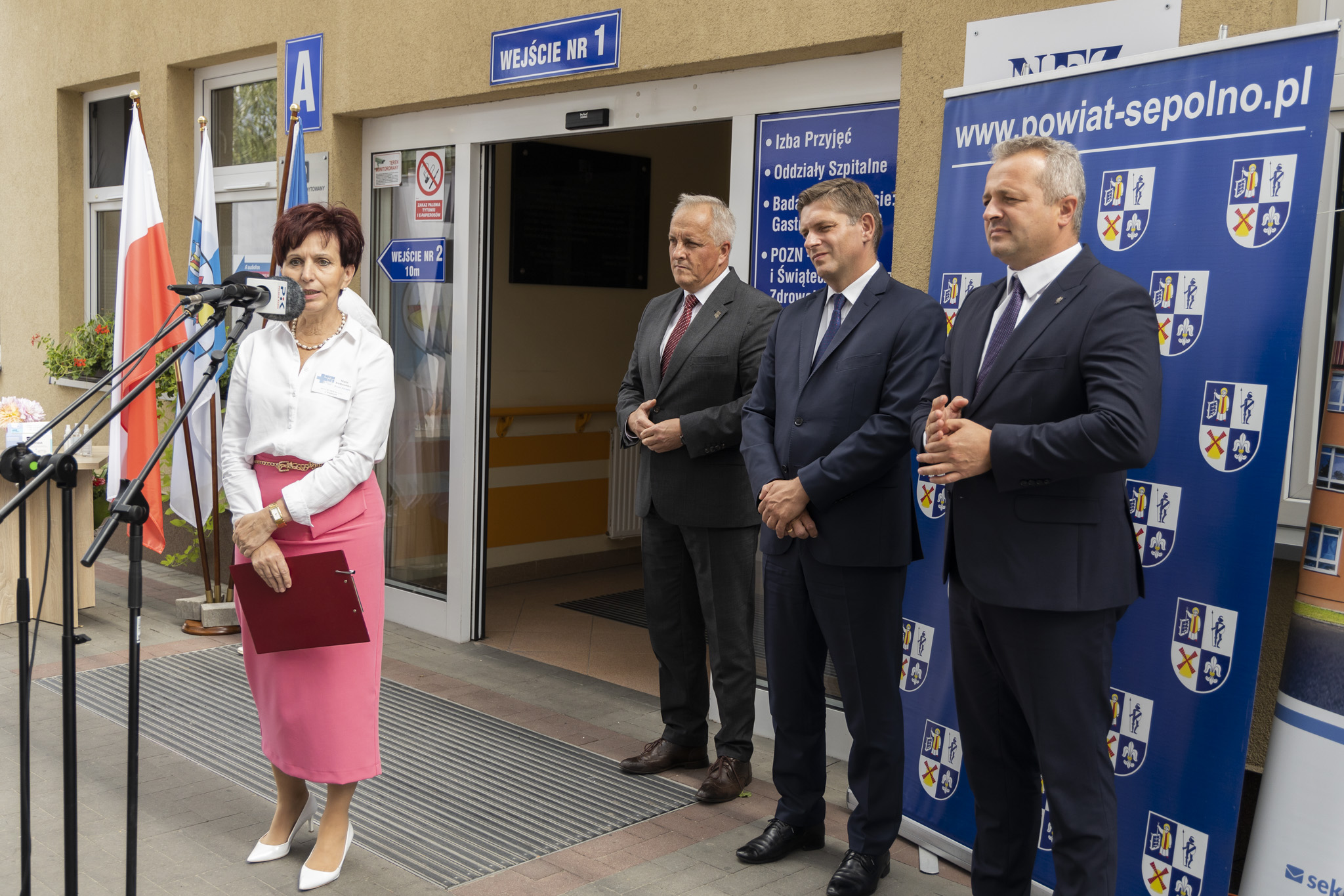 Starosta Sępoleński Jarosław Tadych podziękował wojewodzie za przekazanie do szpitala urządzenia – zakupionego ze środków rządowych.