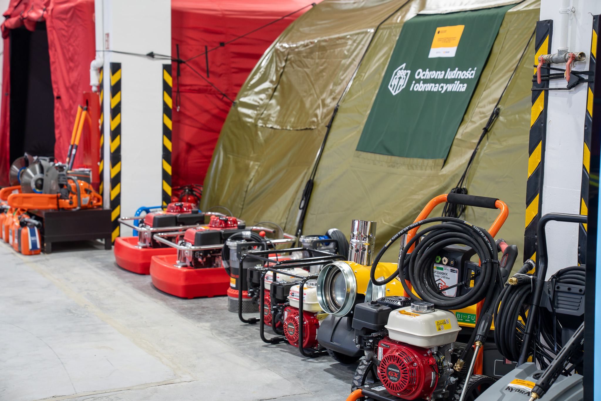 Magazyn zlokalizowany przy ulicy Waryńskiego 32-36 wyposażony został w specjalistyczny sprzęt niezbędny do reagowania w sytuacjach kryzysowych. Znajdują się w nim między innymi:
