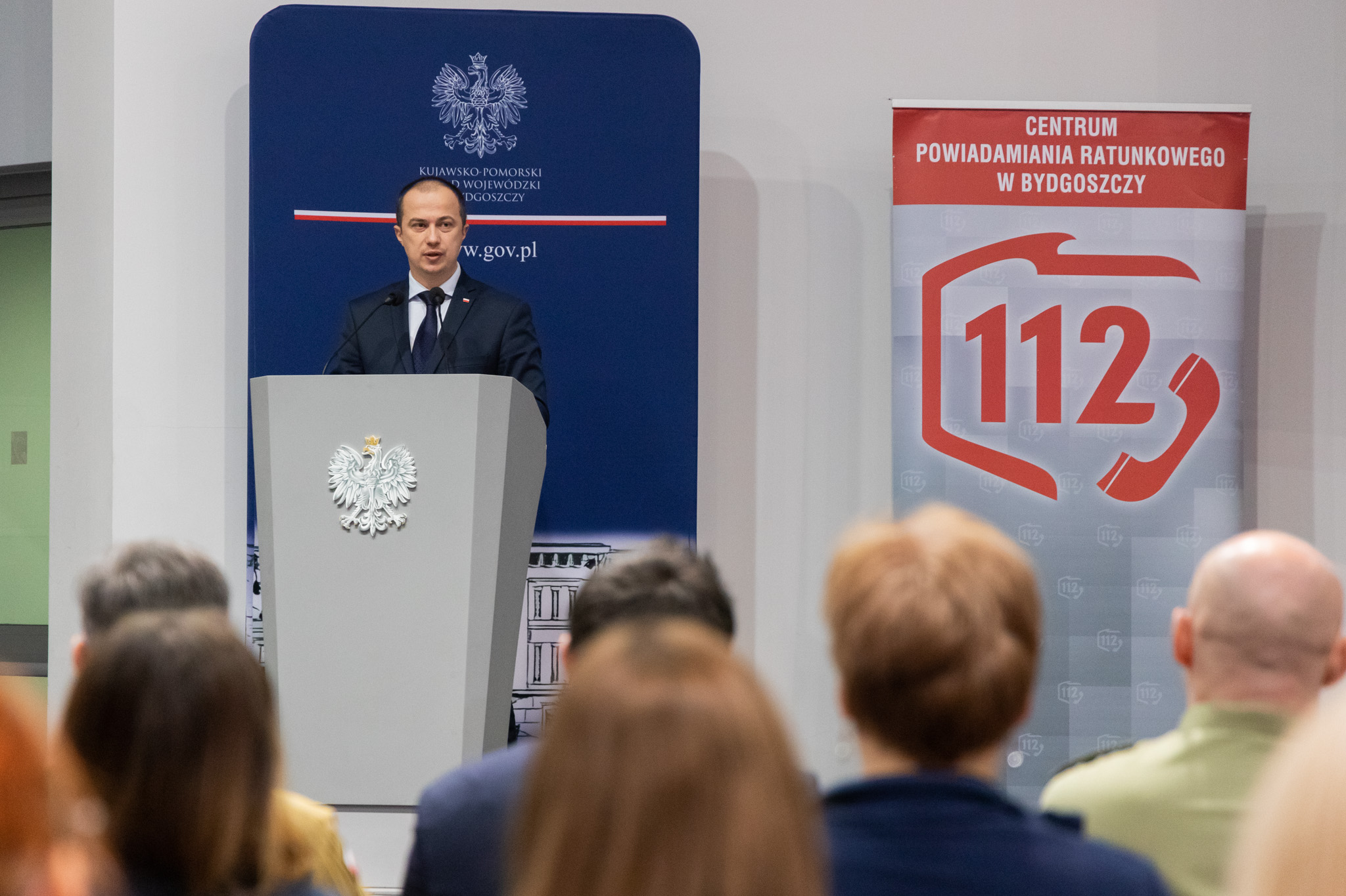 Wicewojewoda podziękował za działalność Centrum Powiadamiania Ratunkowego w Bydgoszczy, podkreślając, że jest to bardzo trudna, odpowiedzialna i stresująca praca.