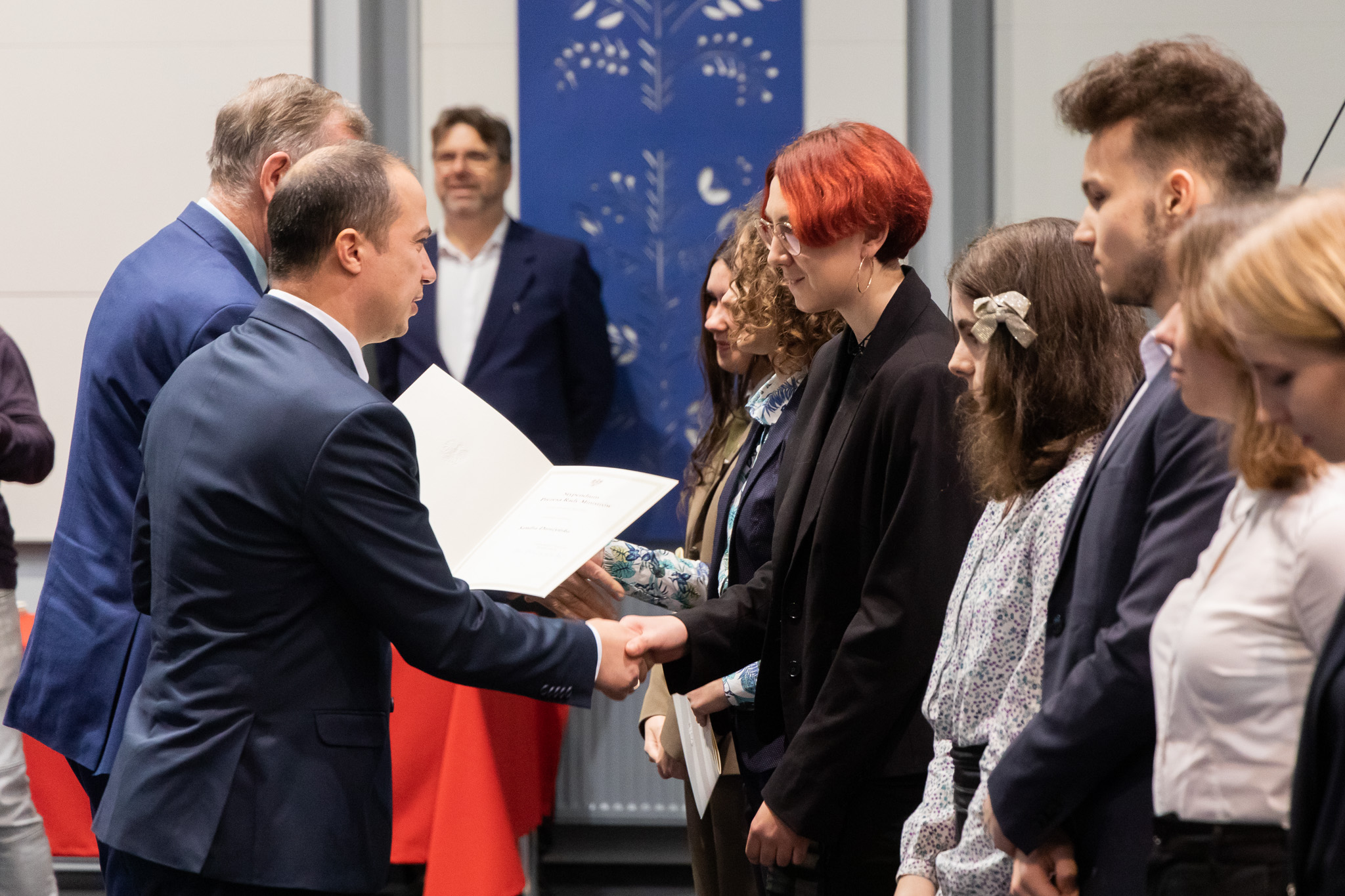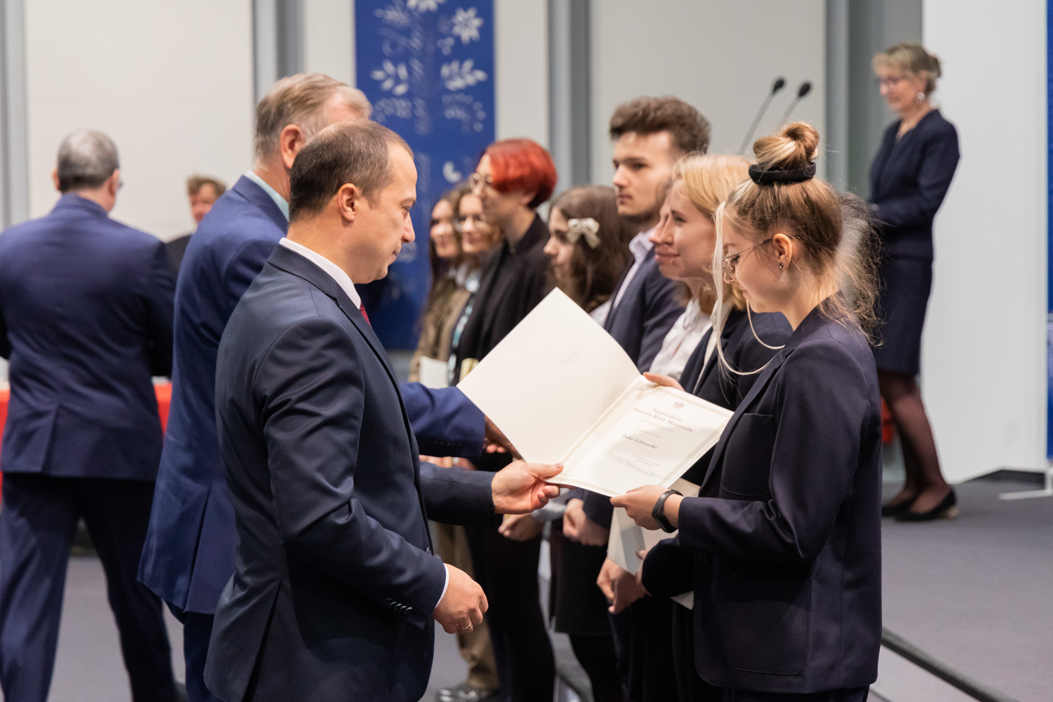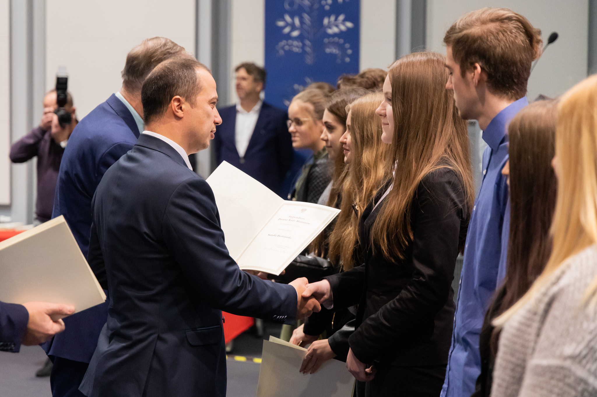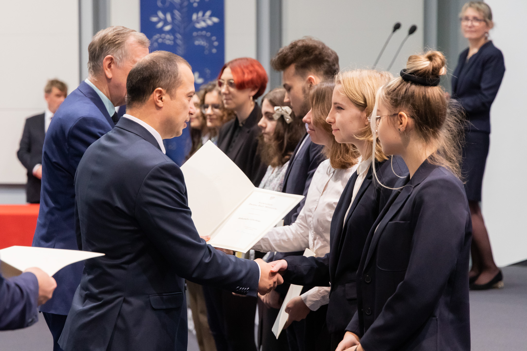 Stypendium Prezesa Rady Ministrów ma podstawowy cel: aby przede wszystkim dać impuls, niezależnie od wartości materialnej tego stypendium. Daleko ważniejszą rzeczą jest to, że jesteście wyróżniani i pozytywnie stygmatyzowani w Waszych społecznościach. To inni będą się na Was wzorowali