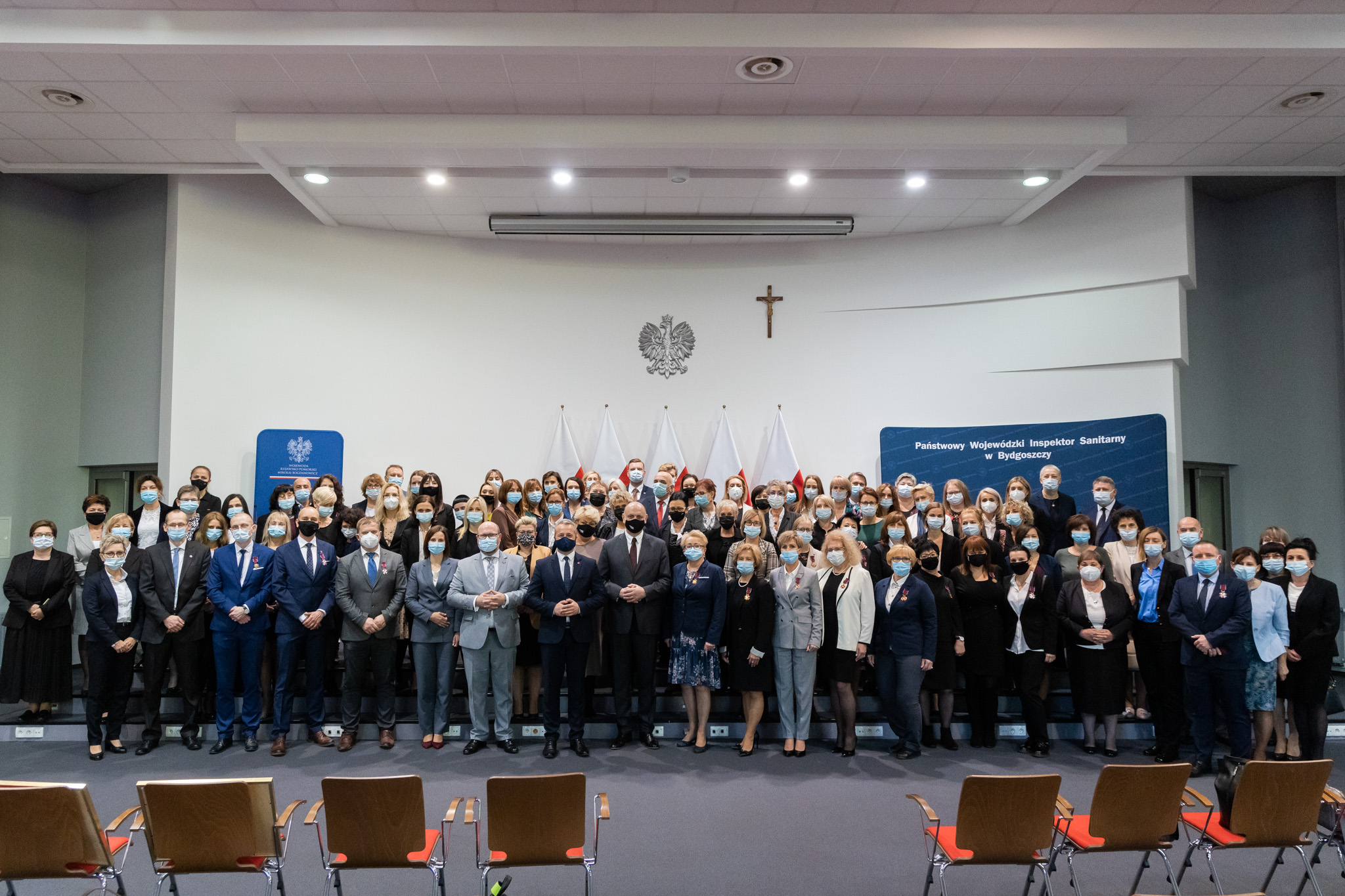 Krzyżami Zasługi przyznanymi przez Prezydenta RP i Odznakami Honorowymi Ministra Zdrowia odznaczeni zostali dziś pracownicy Wojewódzkiej Stacji Sanitarno-Epidemiologicznej w Bydgoszczy i Powiatowych Stacji Sanitarno-Epidemiologicznych szczególnie zasłużeni podczas epidemii COVID-19. Odznaczenia wręczyli Główny Inspektor Sanitarny Krzysztof Saczka i Wojewoda Kujawsko-Pomorski Mikołaj Bogdanowicz.