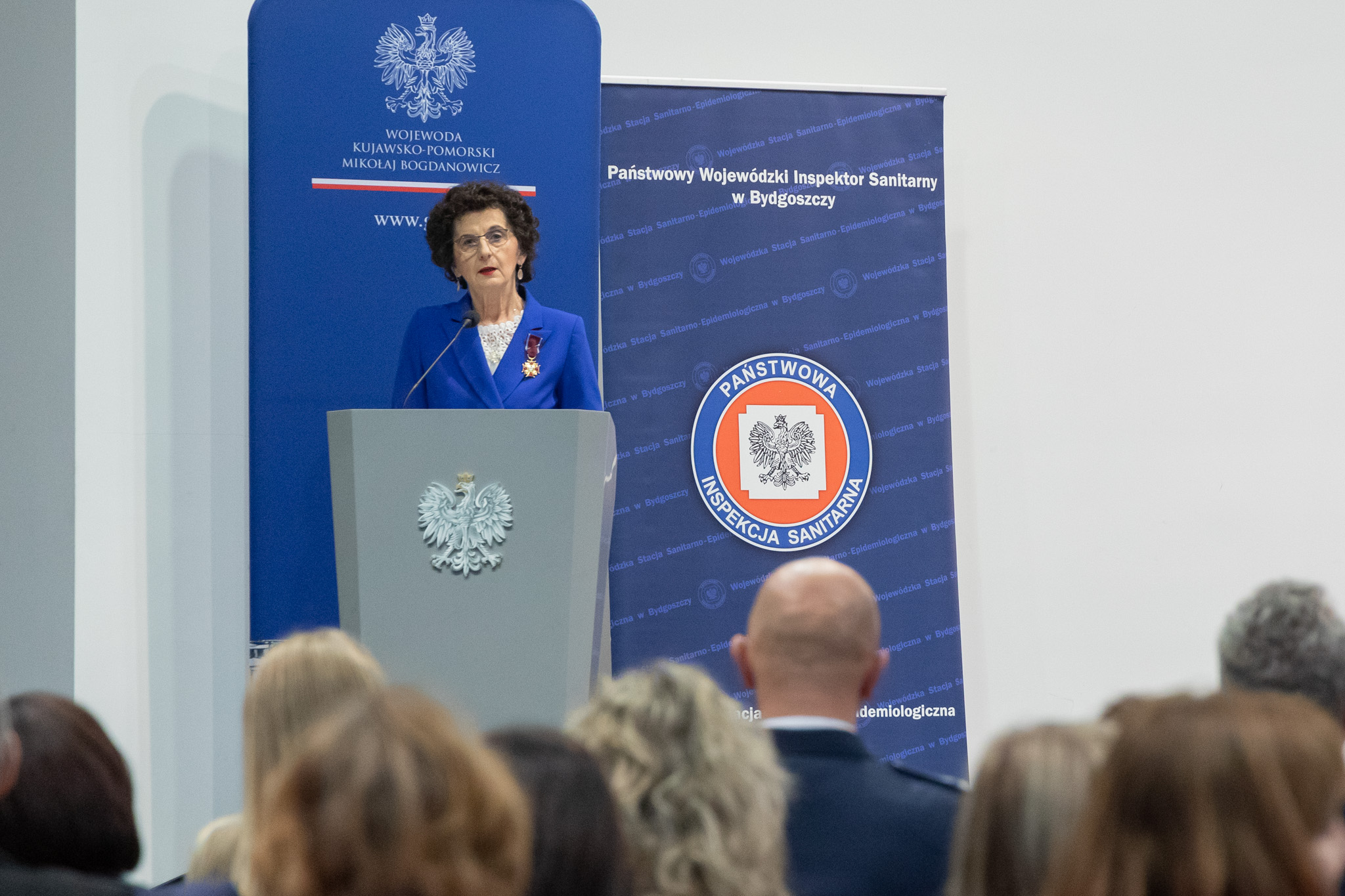Państwowy Powiatowy Inspektor Sanitarny w Brodnicy Danuta Kowalkowska-Szramka, odznaczona podczas uroczystości Złotym Krzyżem Zasługi, przypomniała słowa św. Jana Pawła II.
