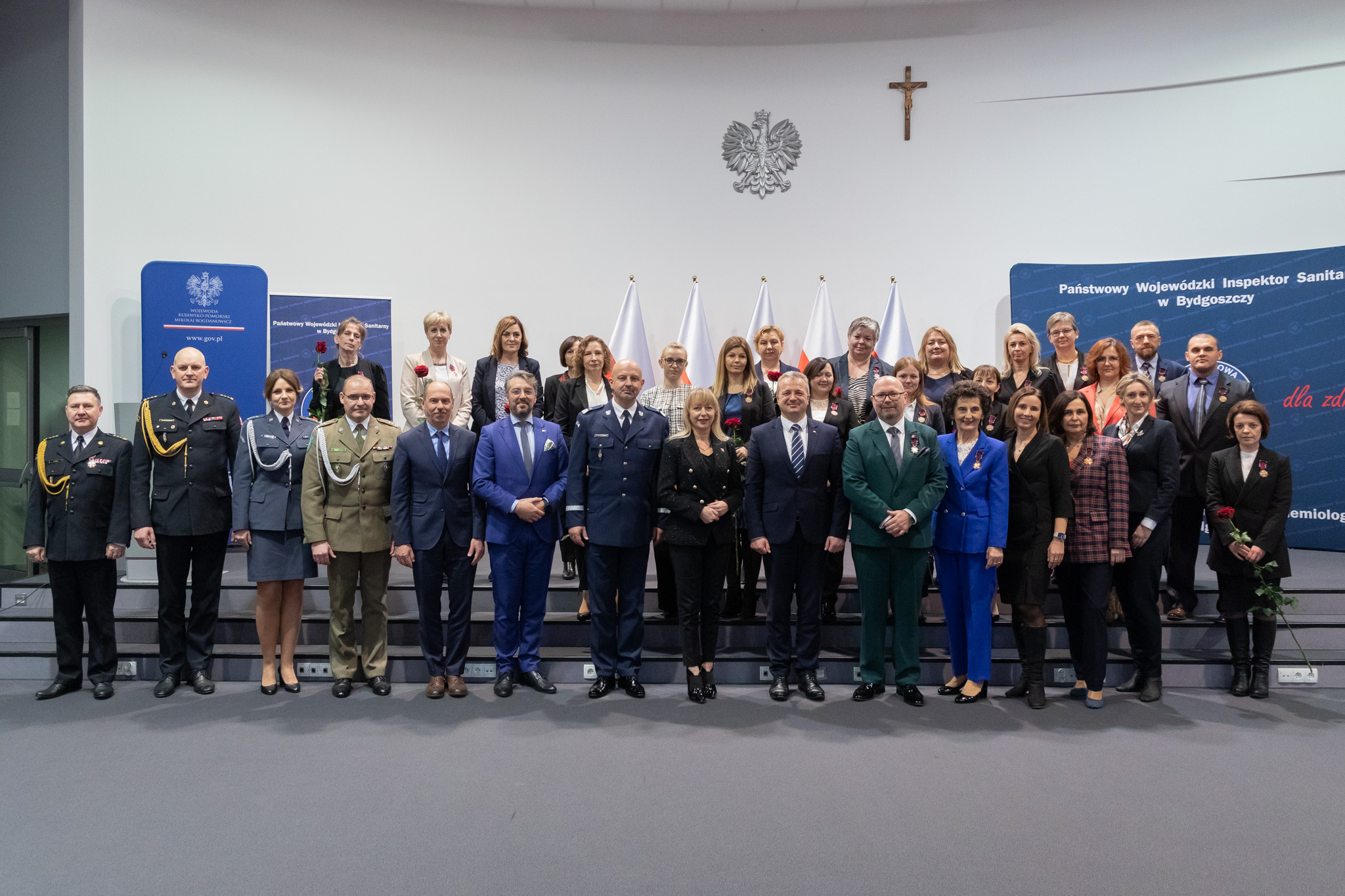 W Kujawsko-Pomorskim Urzędzie Wojewódzkim w Bydgoszczy odbyła się dzisiaj uroczystość wręczenia odznaczeń pracownikom Państwowej Inspekcji Sanitarnej – szczególnie zaangażowanym w walkę z pandemią Covid-19.