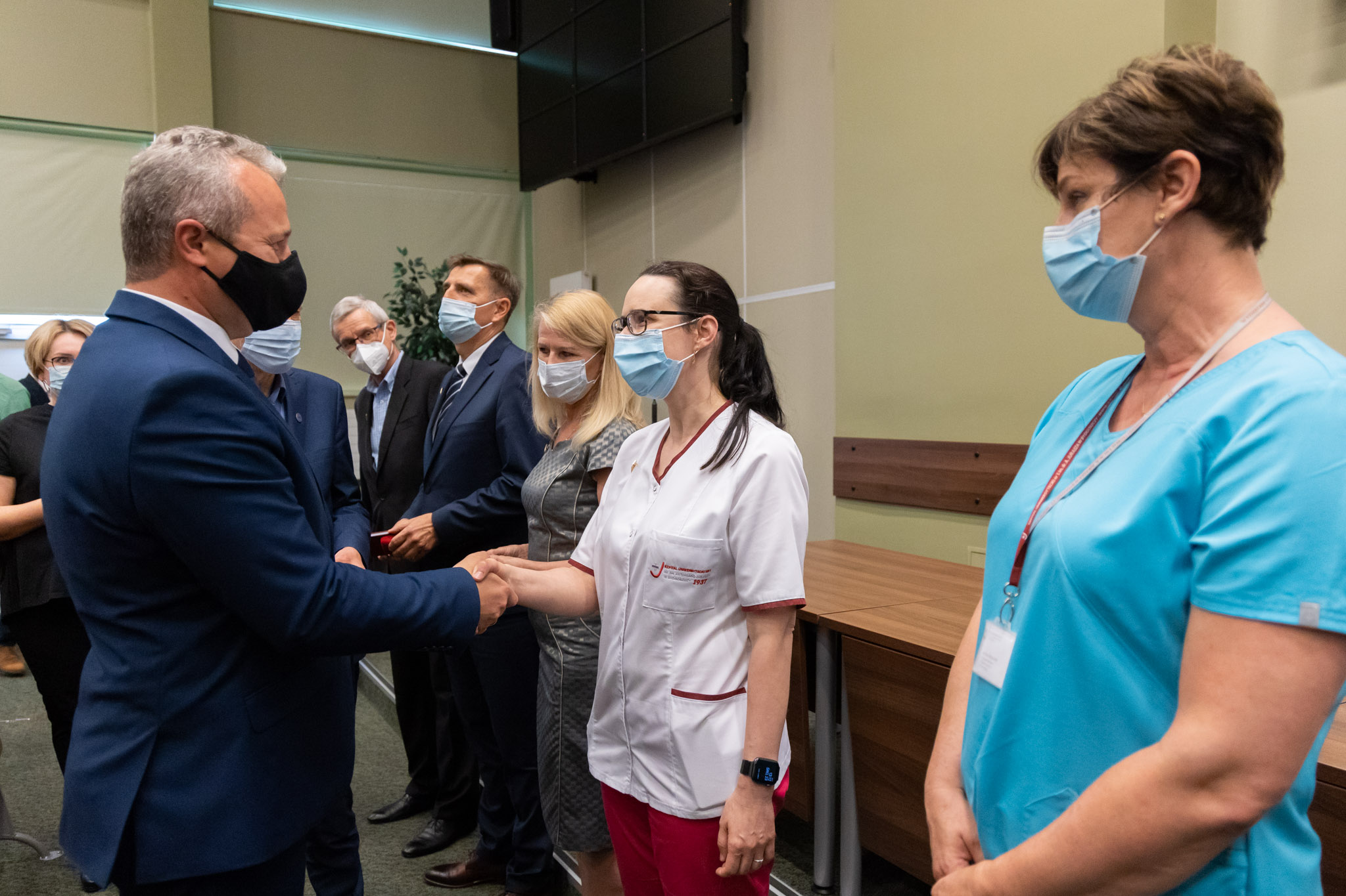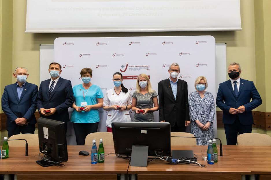 Kierownictwo i pracownicy Szpitala Uniwersyteckiego im. dra A. Jurasza w Bydgoszczy otrzymali dziś z rąk wojewody Mikołaja Bogdanowicza Odznaki Honorowe Ministra Zdrowia „Za zasługi dla ochrony zdrowia”. Przedstawiciele służb medycznych zostali wyróżnieni za ciężką i ofiarną pracę podczas pandemii koronawirusa. Uroczystość była okazją do podsumowania działalności szpitala podczas pandemii Covid -19.
