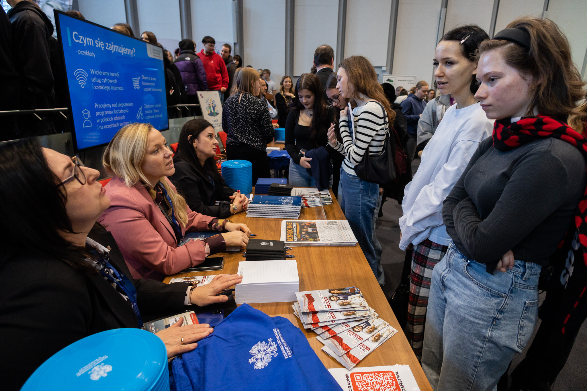 Jestem bardzo zadowolona z udziału w targach — panuje tu świetna atmosfera, można spotkać wielu ciekawych ludzi i poznać różne instytucje oraz możliwości związane z przyszłą karierą. Wciąż uczymy się w liceum, więc nadal zastanawiamy się nad wyborem ścieżki zawodowej.