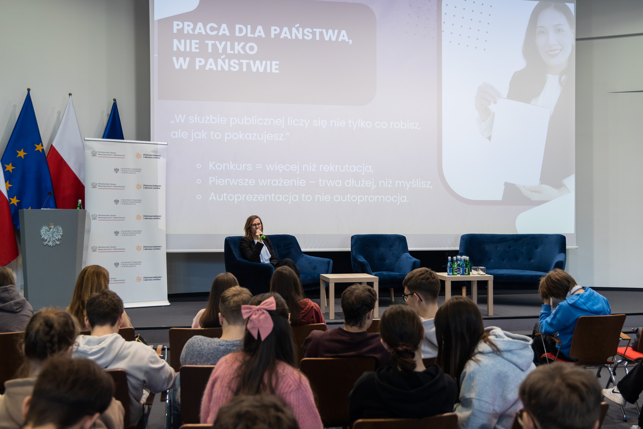 Jest to pierwsze tego typu wydarzenie w naszym urzędzie. Chcemy promować pracę dla Polski. Myślę, że to oddaje co robią ludzie pracujący w urzędach, wojsku, straży pożarnej, policji czy inspekcjach. Na co dzień te wszystkie służby realizują bardzo ważne zadania, które są bardzo różne. Zależy mi, żeby pokazać Wam, że możliwość zaangażowania jest bardzo szeroka. Często nie zdajemy sobie sprawy, kiedy pojawiają się sytuacje, w których szeroko pojęte państwo ma swój udział