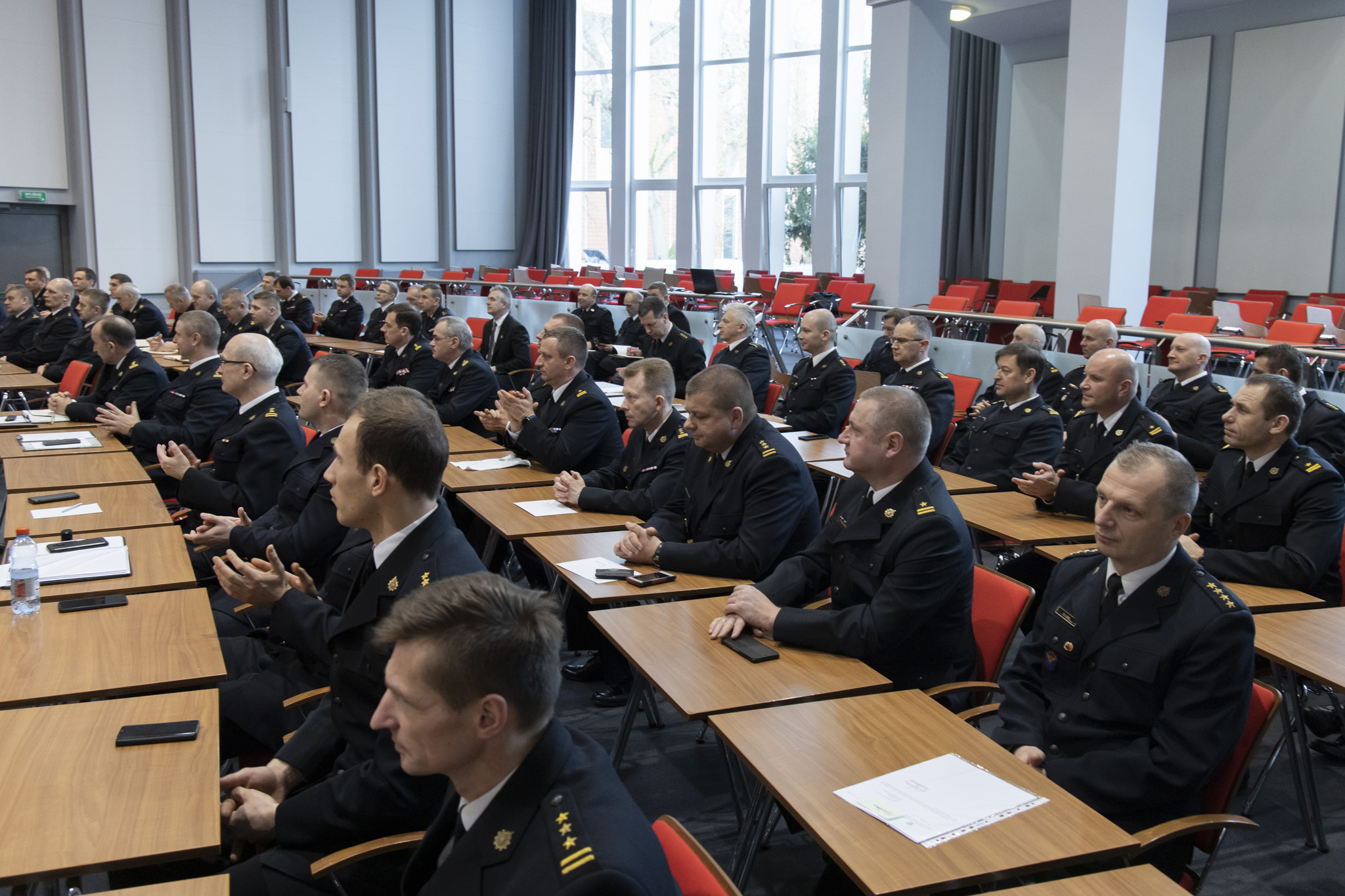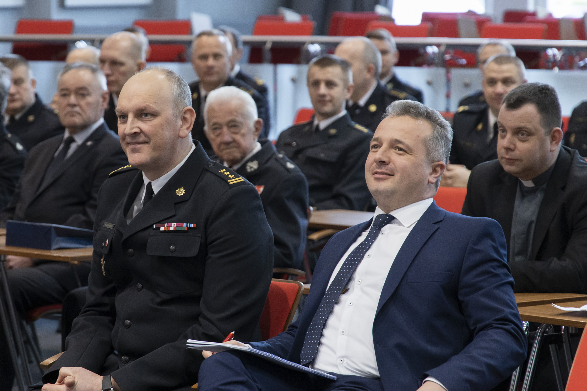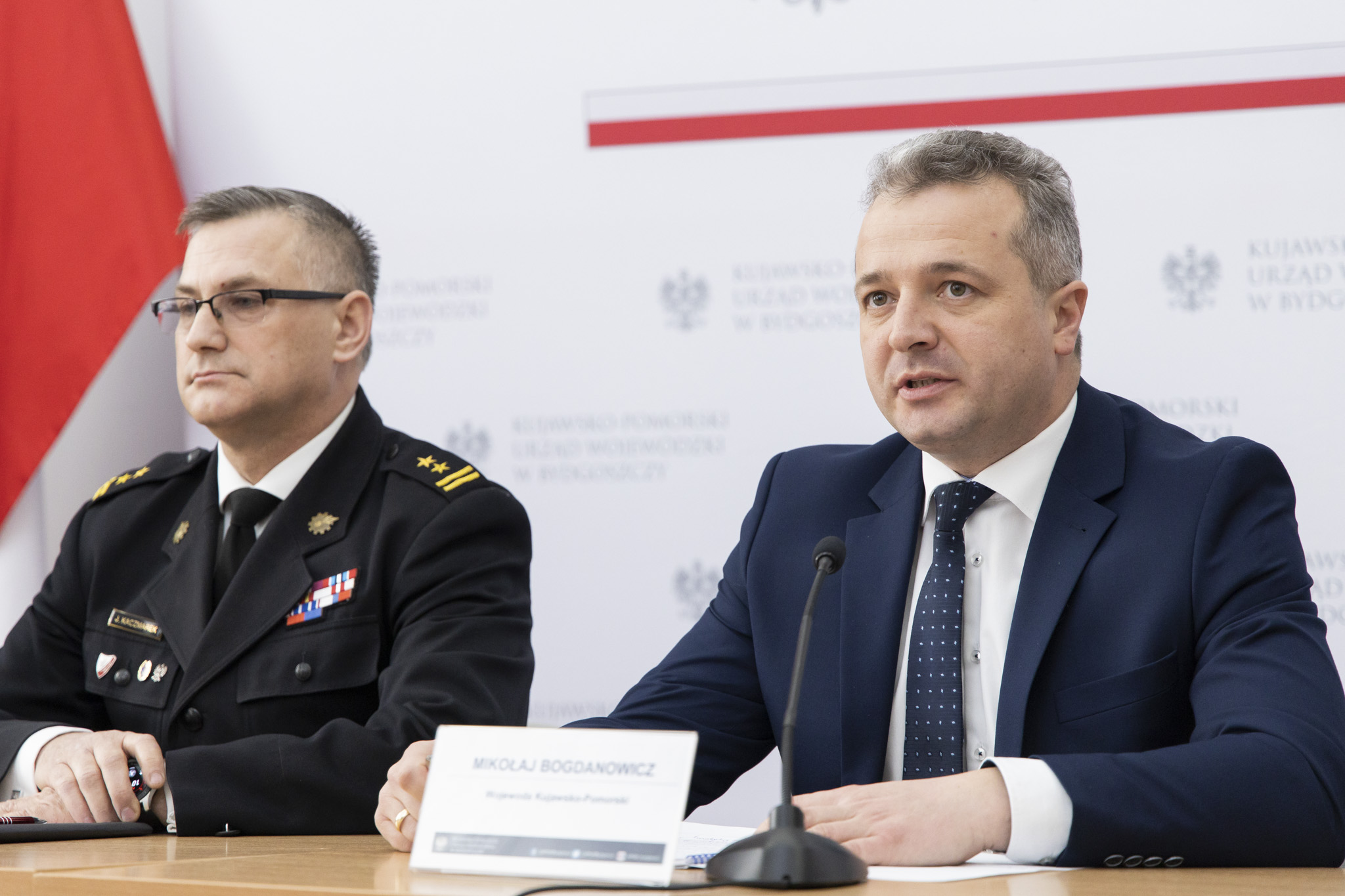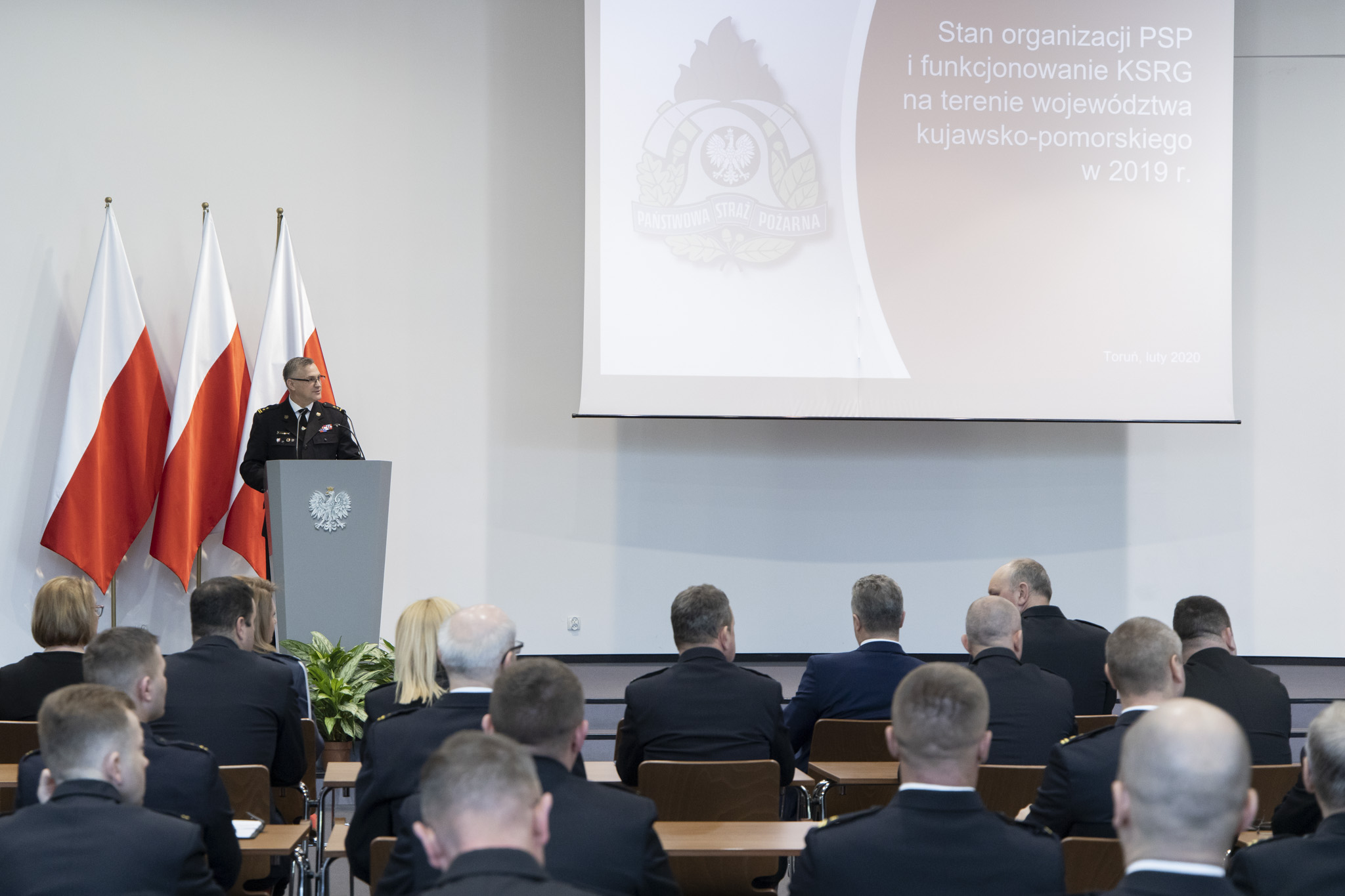Podczas konferencji Wojewoda Kujawsko-Pomorski Mikołaj Bogdanowicz podzielił się szeregiem informacji dotyczących funkcjonowania Państwowej Straży Pożarnej i Ochotniczych Straży Pożarnych w roku 2019 oraz planów, jakie wspólnie z komendantami Państwowej Straży Pożarnej zakreślił na rok bieżący.