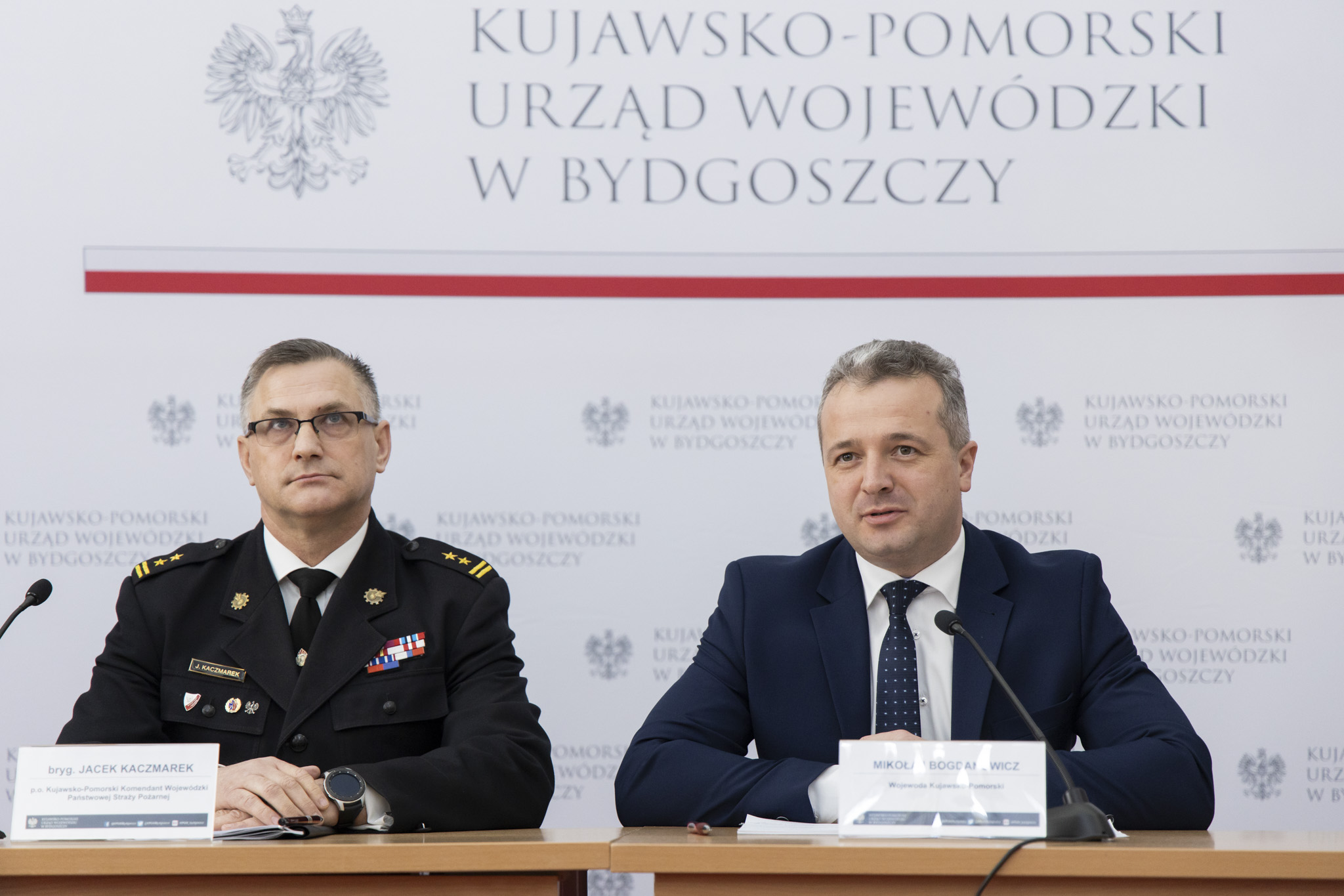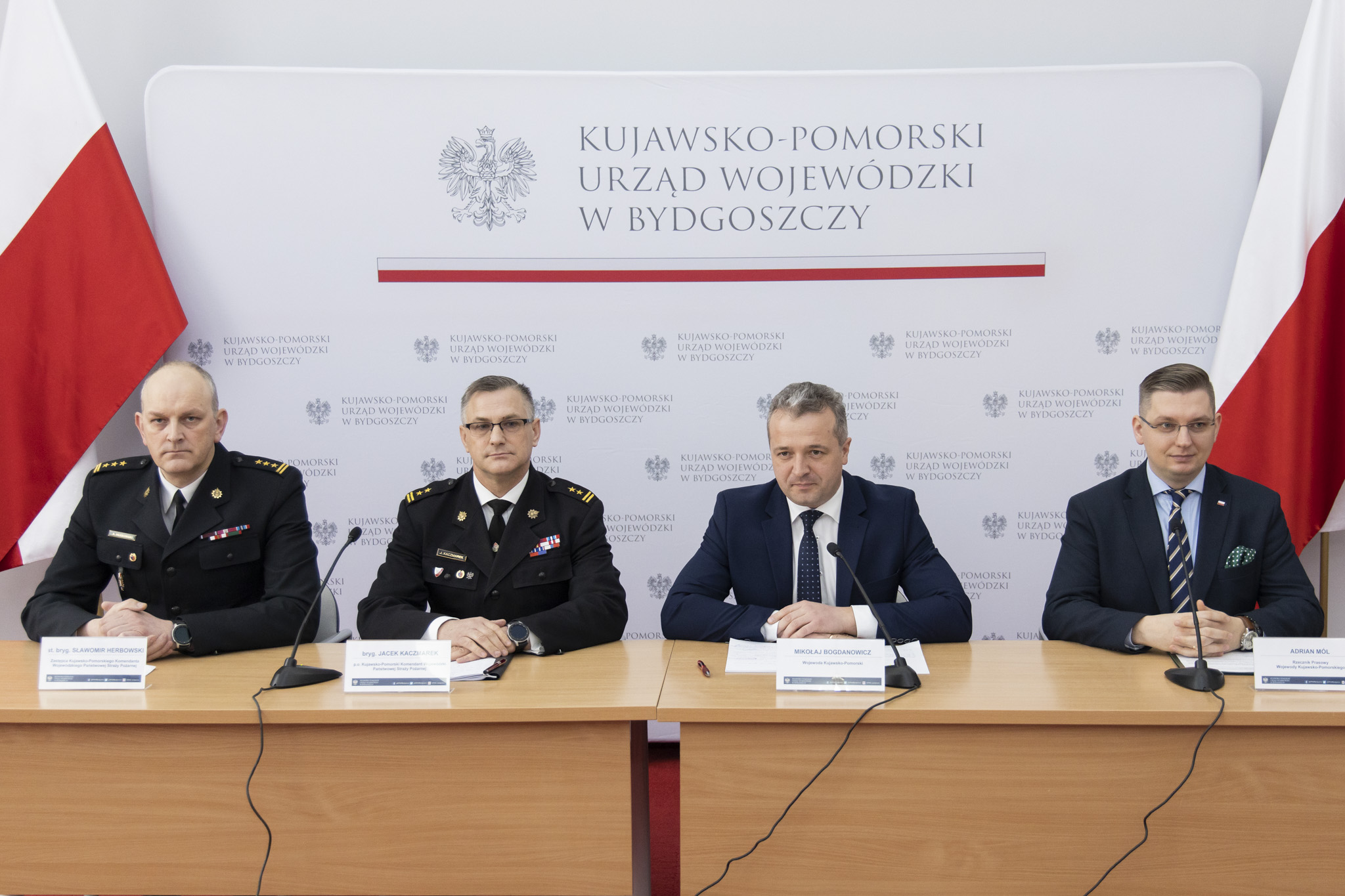 Dzisiaj, w Kujawsko-Pomorskim Urzędzie Wojewódzkim, odbyła się narada roczna kadry kierowniczej PSP z terenu województwa kujawsko-pomorskiego. Przed spotkaniem Wojewoda Kujawsko-Pomorski Mikołaj Bogdanowicz, p.o. Kujawsko-Pomorskiego Komendanta Wojewódzkiego Państwowej Straży Pożarnej bryg. Jacek Kaczmarek oraz Zastępca Kujawsko-Pomorskiego Komendanta Wojewódzkiego Państwowej Straży Pożarnej st. bryg. Sławomir Herbowski spotkali się z dziennikarzami. Tematem konferencji było podsumowanie działalności straży pożarnej w województwie kujawsko-pomorskim w minionym roku.