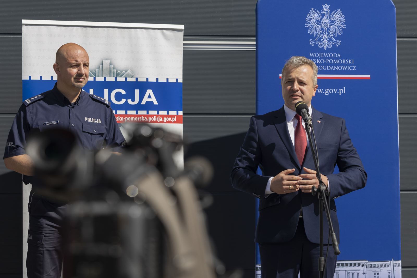 Podczas konferencji wojewoda Mikołaj Bogdanowicz podkreślił, że bez pomocy Policji sprostanie niektórym zadaniom byłoby dużo trudniejsze.