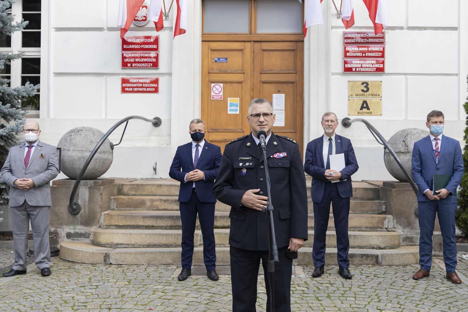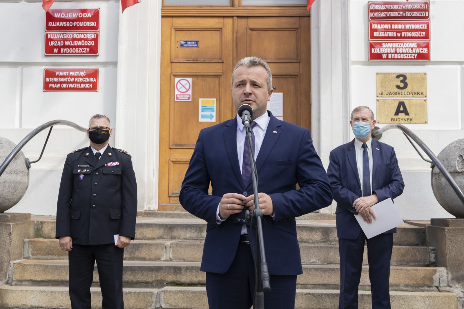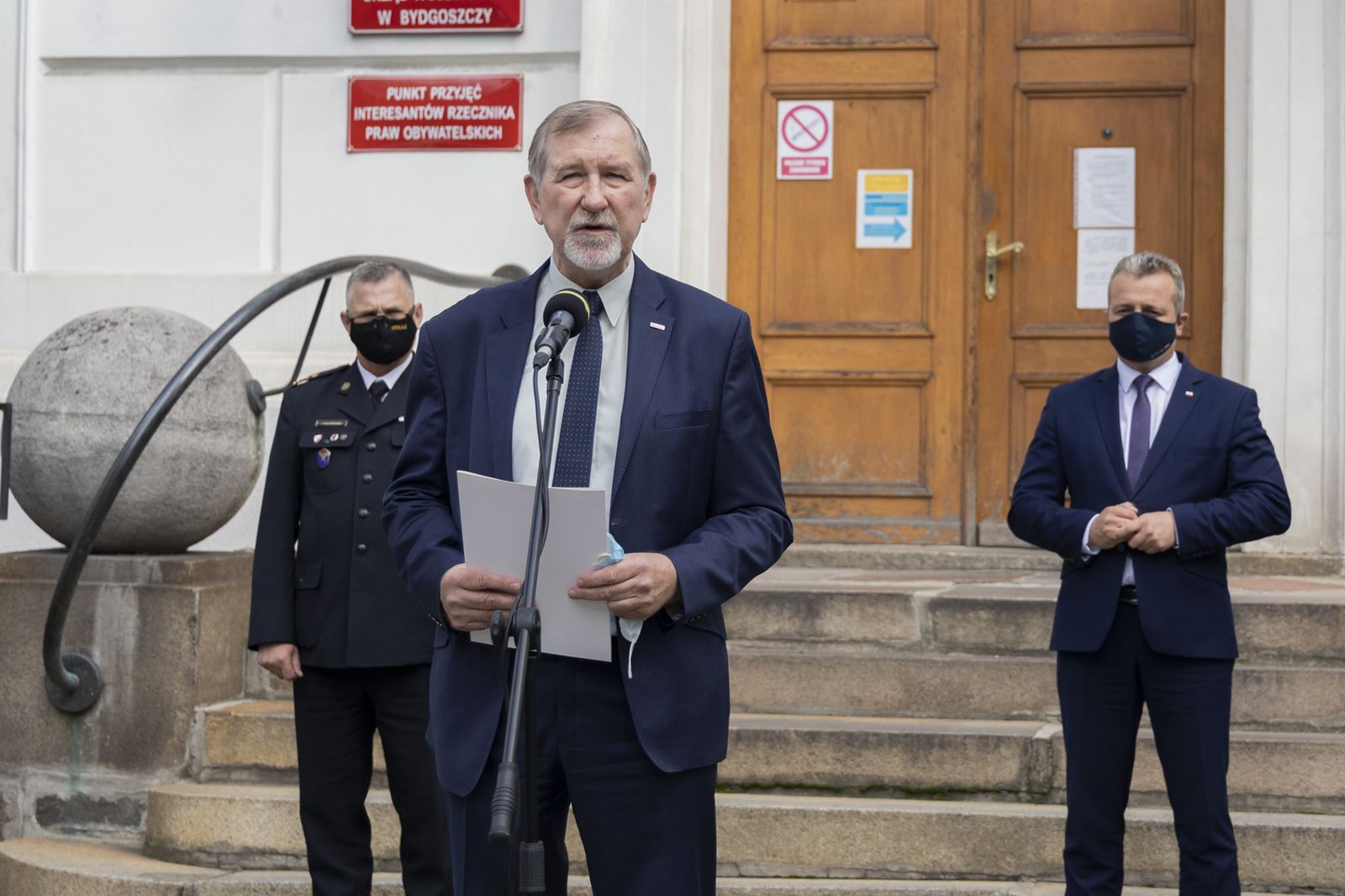 - W ostatnich tygodniach do kujawsko-pomorskich szkół trafiło przeszło 380 tys. litrów środków dezynfekcyjnych, przeszło 2,9 miliona maseczek oraz 3800 termometrów. To kilkadziesiąt tirów środków ochrony, które trafiły do naszego województwa. Dostarczenie takiej ilości materiałów było możliwe dzięki wzorowej współpracy z Państwową Strażą Pożarną. Bardzo dziękuję panom komendantom wojewódzkim i powiatowym wszystkim strażakom, którzy uczestniczyli w tej akcji i z swojego zadania wywiązali się doskonale. Dziękuję także dowódcom i żołnierzom 8. Kujawsko-Pomorskiej Brygady Wojsk Obrony Terytorialnej, która od początku pandemii odgrywa bardzo ważną rolę – podkreślił przedstawiciel rządu w województwie.