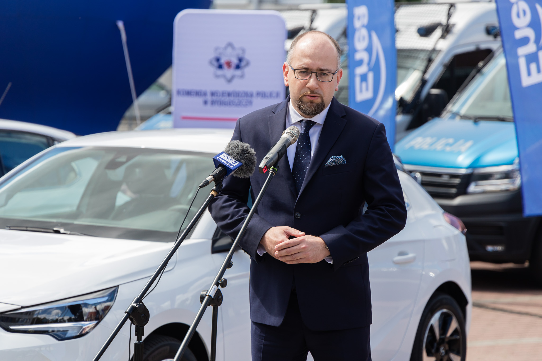 To niezwykle ważny dzień dla kujawsko-pomorskiej policji, ponieważ uzyskuje dwa nowe samochody - bezpieczne zarówno pod względem wykonywania państwa obowiązków, jak i ochrony środowiska. Dziękujemy panie prezesie, że firma Enea, która jest dostarczycielem energii na naszym terenie również dba o to, że mamy do dyspozycji dwa samochody elektryczne