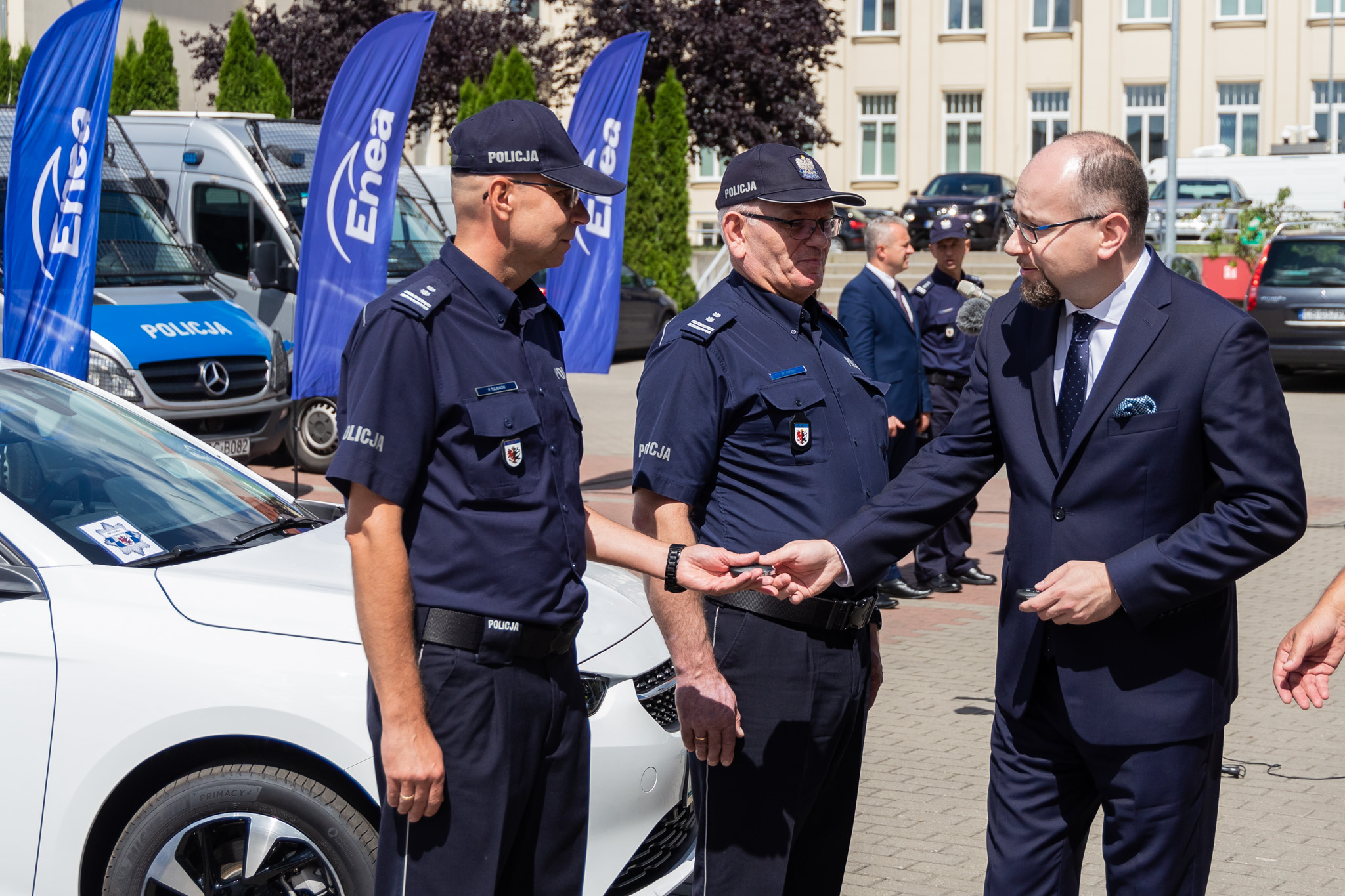 Prezes Fundacji Enea i Wojewoda Mikołaj Bogdanowicz przekazali kujawsko-pomorskiej Policji dwa nowe samochody elektryczne. Będą służyły jako pojazdy wsparcia operacyjnego.