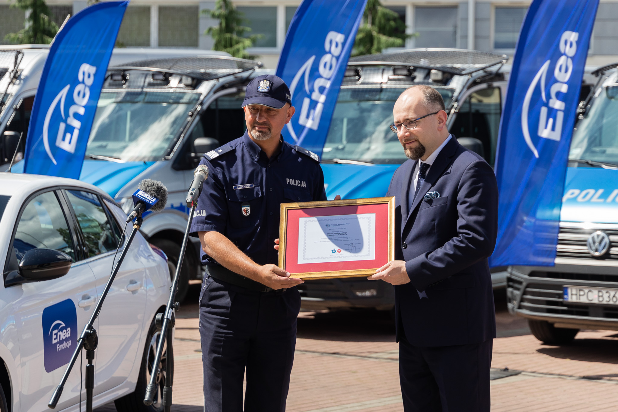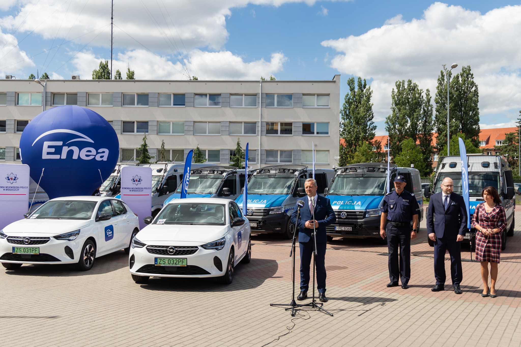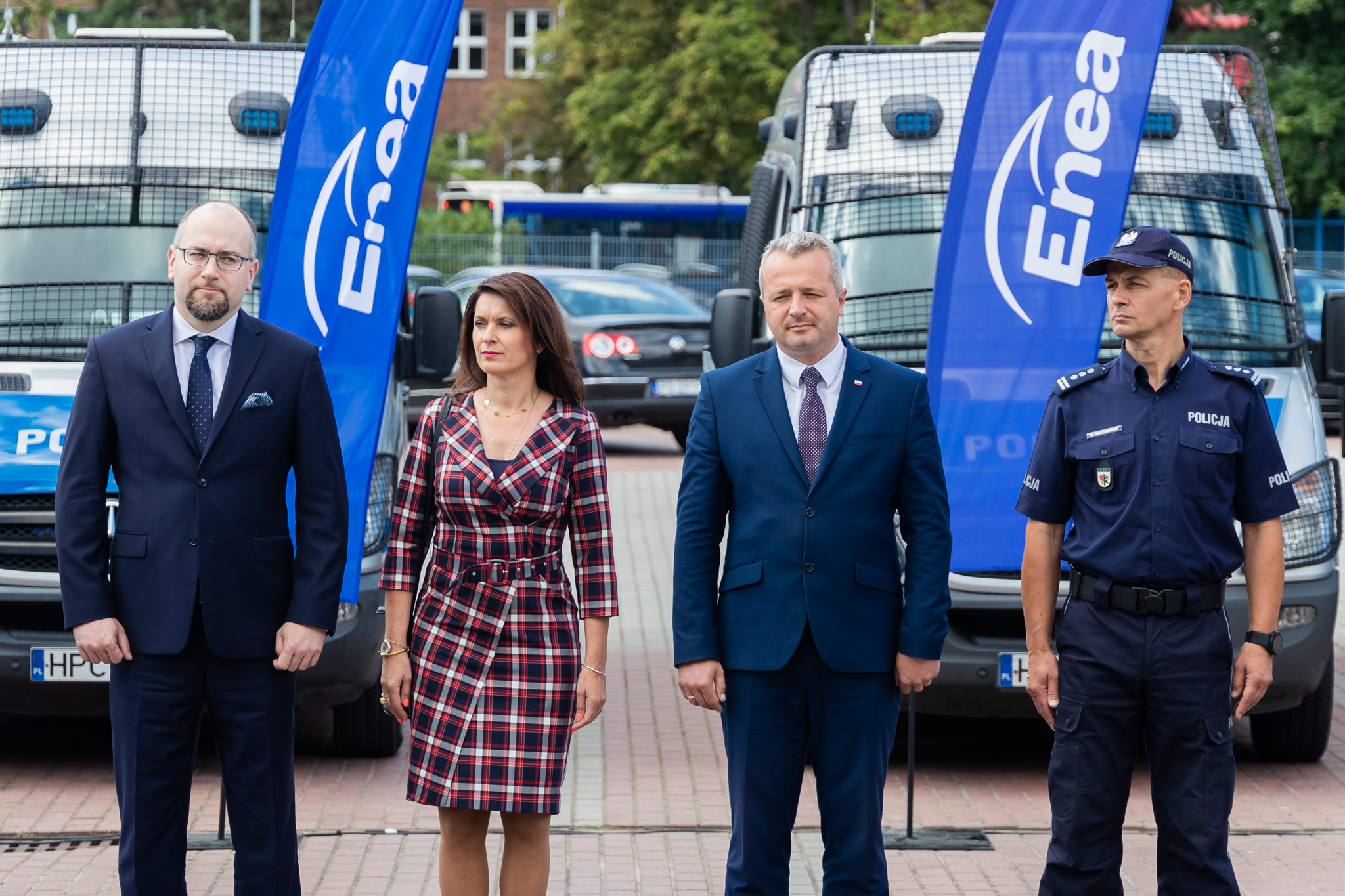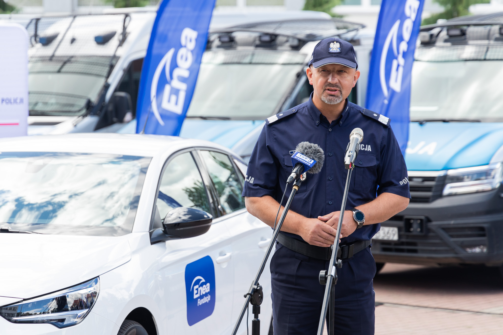 Dzisiaj, razem z prezesem grupy Enea Panem Pawłem Majewskim przekazujemy dwa samochody elektryczne na potrzeby komendy w Mogilnie i Tucholi. Mamy już wspólne 7-letnie doświadczenie w różnego rodzaju kryzysowych sytuacjach – w których współpraca z Eneą zawsze była bardzo profesjonalna