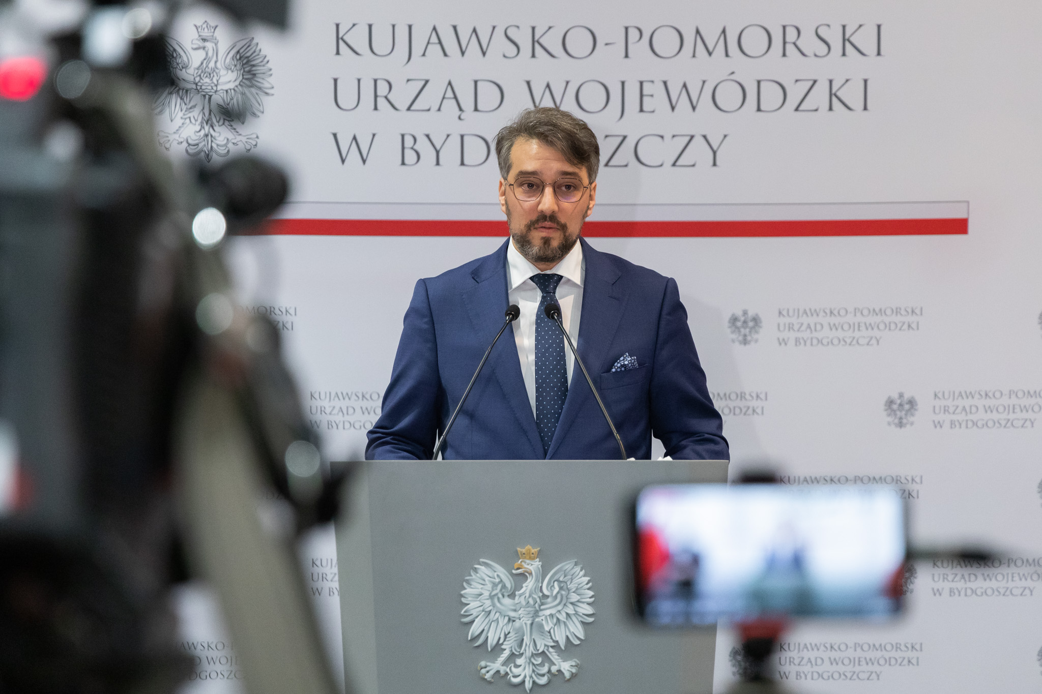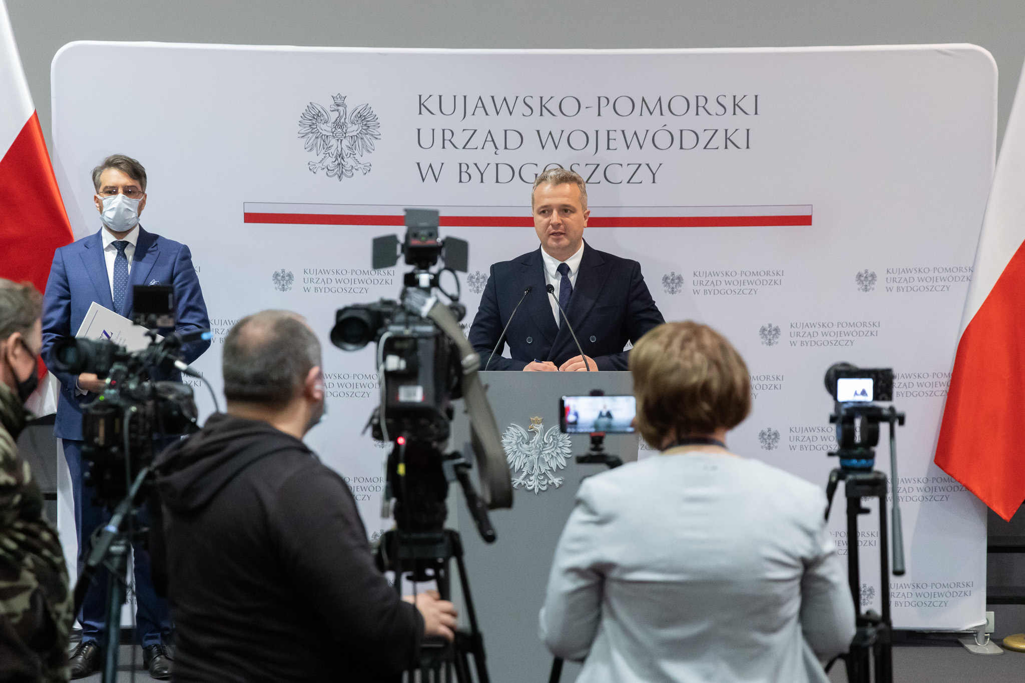 Inwestycje oraz aktualna sytuacja epidemiczna były tematem dzisiejszej konferencji prasowej w Kujawsko-Pomorskim Urzędzie Wojewódzkim w Bydgoszczy, z udziałem Wojewody Kujawsko-Pomorskiego Mikołaja Bogdanowicza oraz Dyrektora Kujawsko-Pomorskiego Oddziału Wojewódzkiego Narodowego Funduszu Zdrowia Jana Gesska.