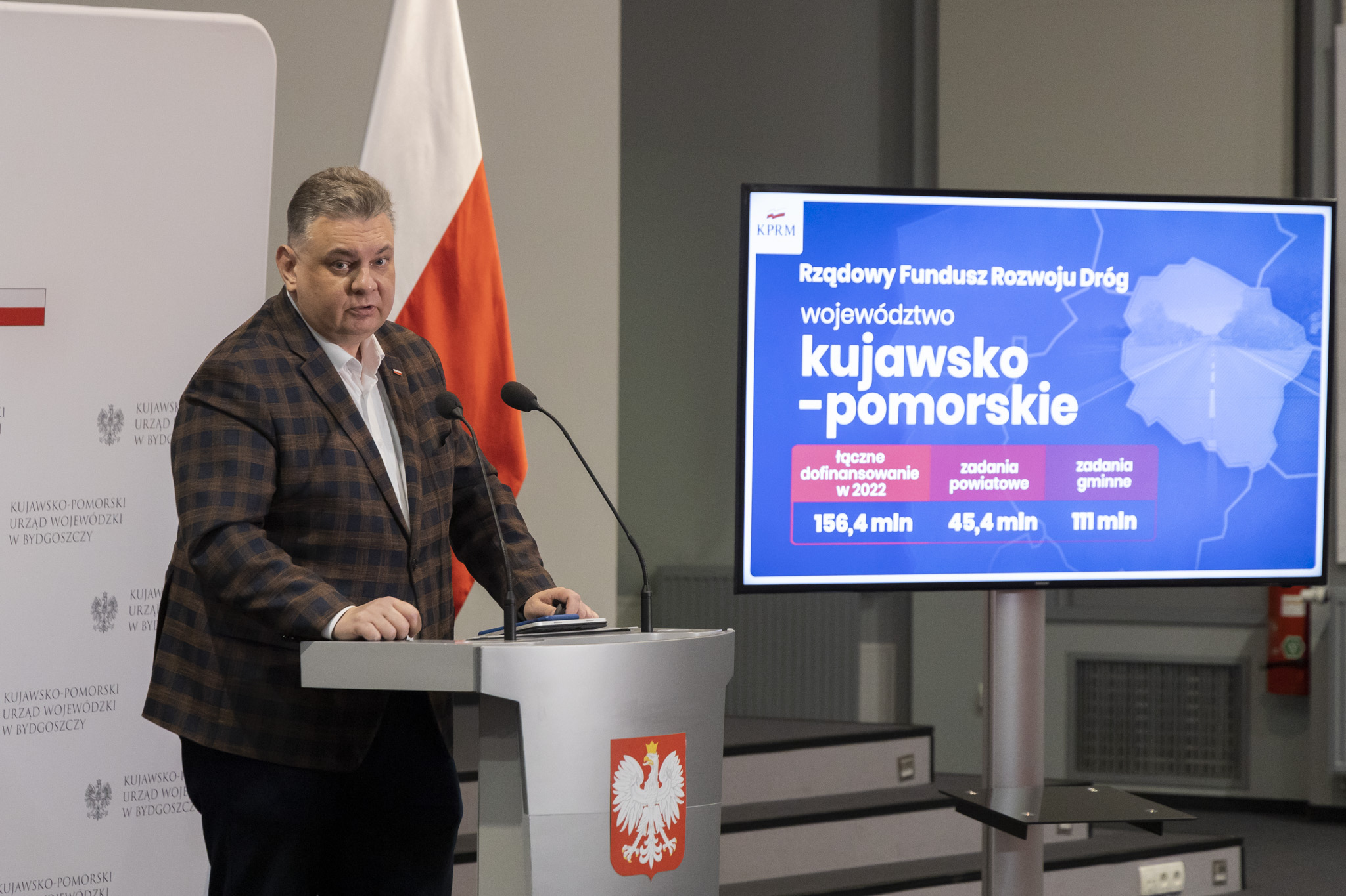 Podczas spotkania z dziennikarzami w Bydgoszczy wicewojewoda Radosław Kempinski podkreślał, że dzięki dofinansowaniu z budżetu państwa samorządy z całej Polski realizują inwestycje ważne dla mieszkańców.