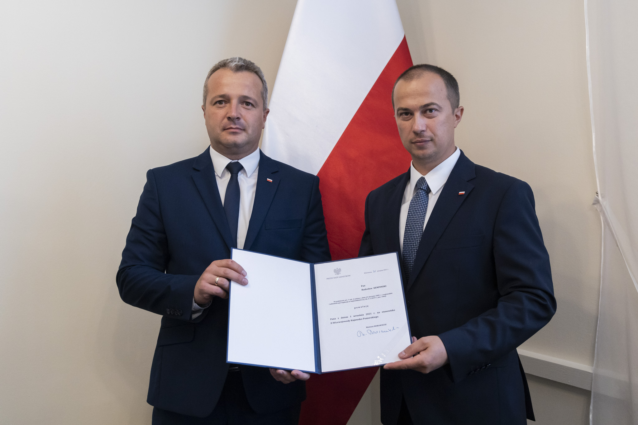 Premier Mateusz Morawiecki powołał Radosława Kempinskiego na stanowisko II Wicewojewody Kujawsko-Pomorskiego. Nominację wręczył dzisiaj Wojewoda Kujawsko-Pomorski Mikołaj Bogdanowicz.