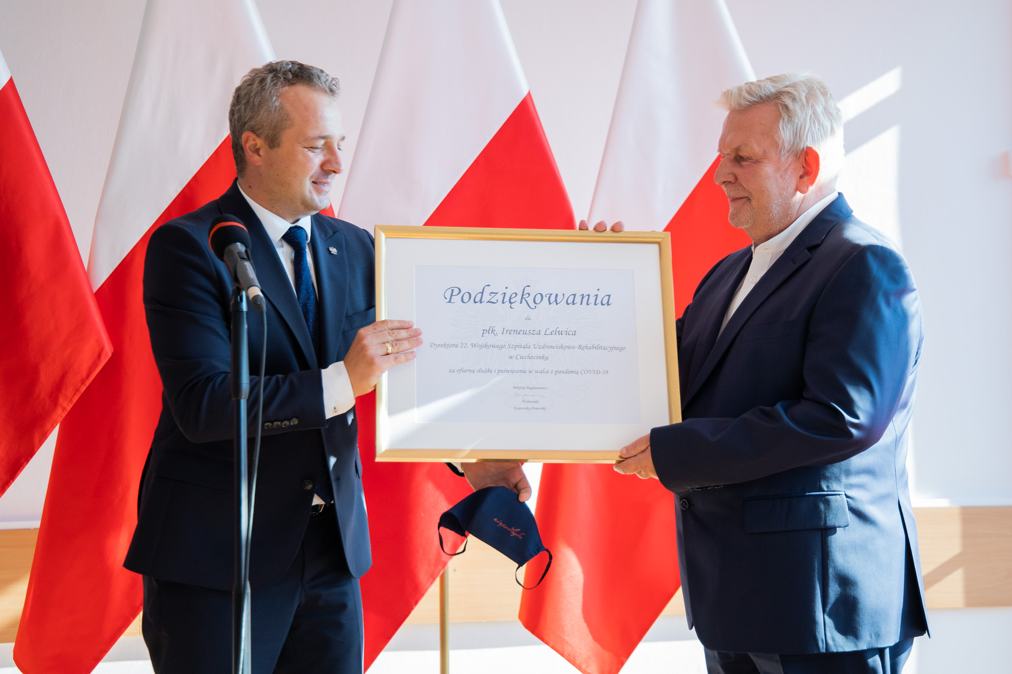 Wojewoda Mikołaj Bogdanowicz powiedział, że wręczając odznaczenia w szpitalach z województwa kujawsko-pomorskiego dziękuje medykom za starania w trakcie wszystkich trzech fal koronawirusa. Zwrócił jednak uwagę na to, że to, co działo się w Wojskowym Szpitalu Uzdrowiskowo-Rehabilitacyjnym w Ciechocinku zasługuje na szczególną uwagę.