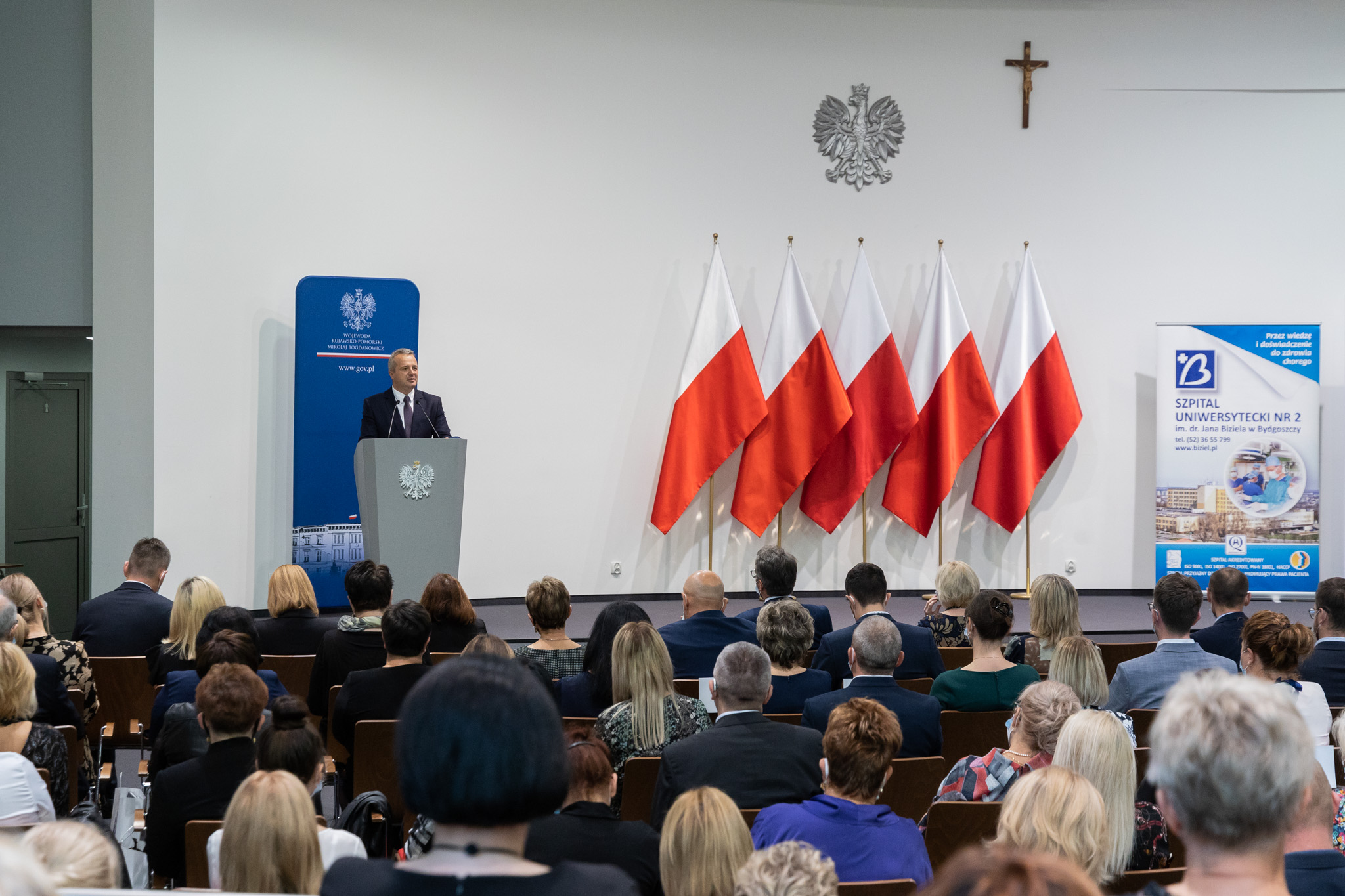 Dziś w Kujawsko-Pomorskim Urzędzie Wojewódzkim w Bydgoszczy wojewoda Mikołaj Bogdanowicz wręczył pracownikom Szpitala Uniwersyteckiego nr 2 im. Jana Biziela w Bydgoszczy Brązowy Krzyż Zasługi za wzorowe, wyjątkowo sumienne wykonywanie obowiązków wynikających z pracy zawodowej i Złoty Medal za Długoletnią Służbę, a także Odznaki Honorowe „Za zasługi dla ochrony zdrowia”.