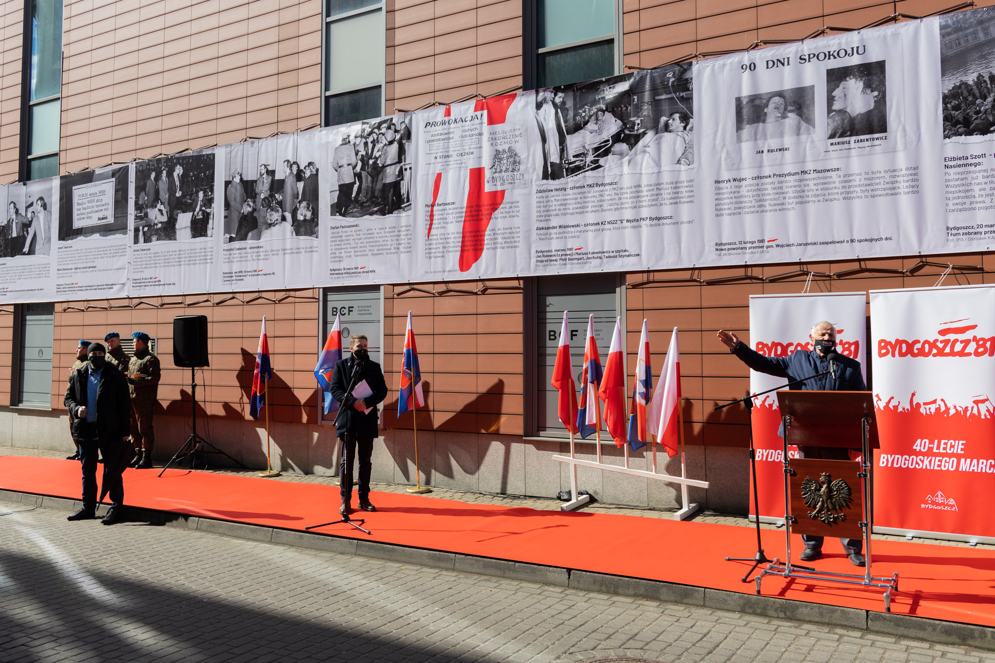 - Marzec 1981 r. był momentem przełomowym. 40 lat temu, w Bydgoszczy, doszło do pokazu siły po stronie komunistów, którzy siłą chcieli zdławić polską rewolucję wolności – podkreślił premier Mateusz Morawiecki. - Z tego miejsca kłaniam się nisko bohaterom tamtych dni, najciężej pobitym ofiarom, którzy wtedy stawali w pierwszym szeregu walki w ówczesnej polskiej insurekcji” – dodał.