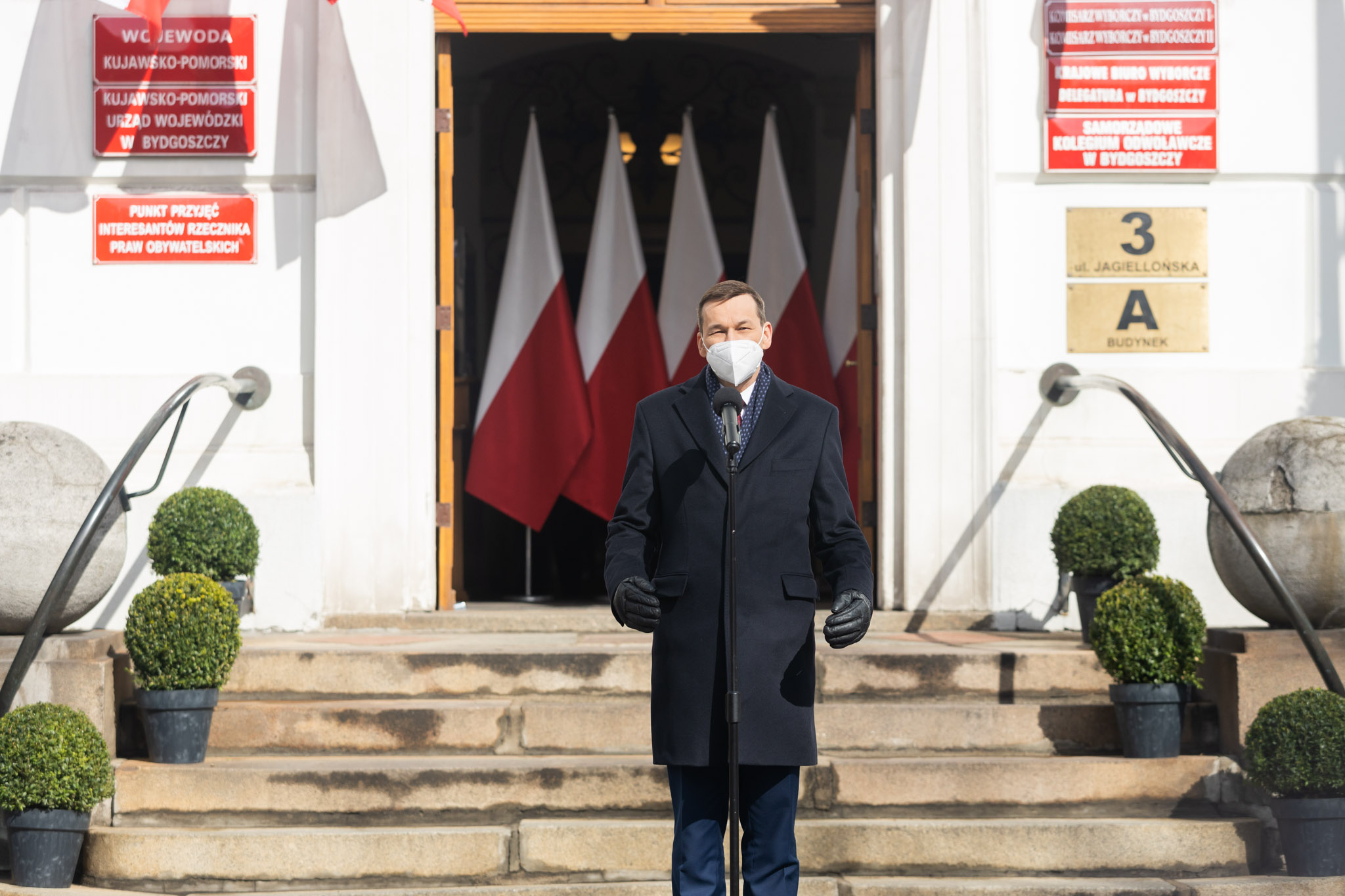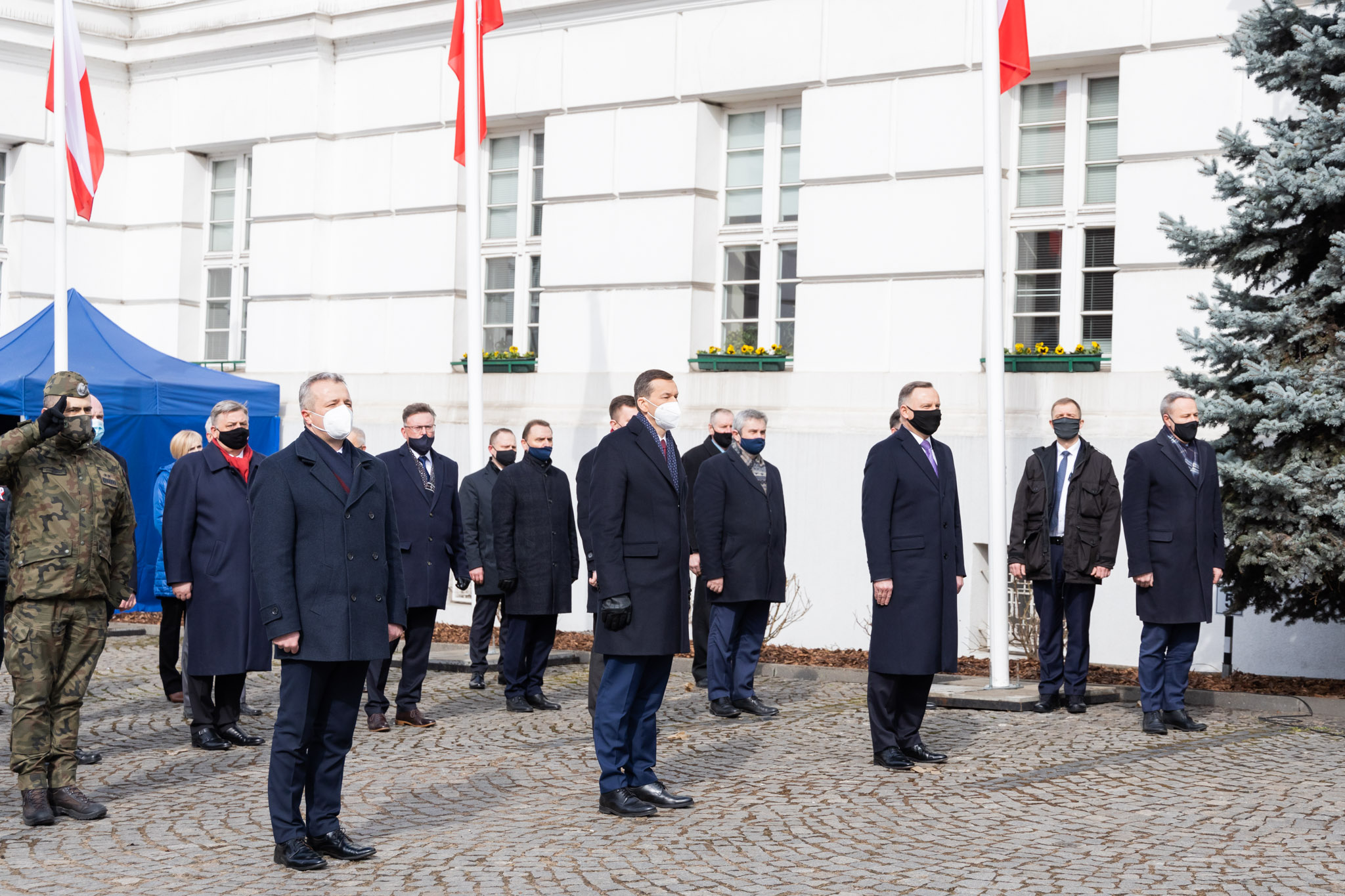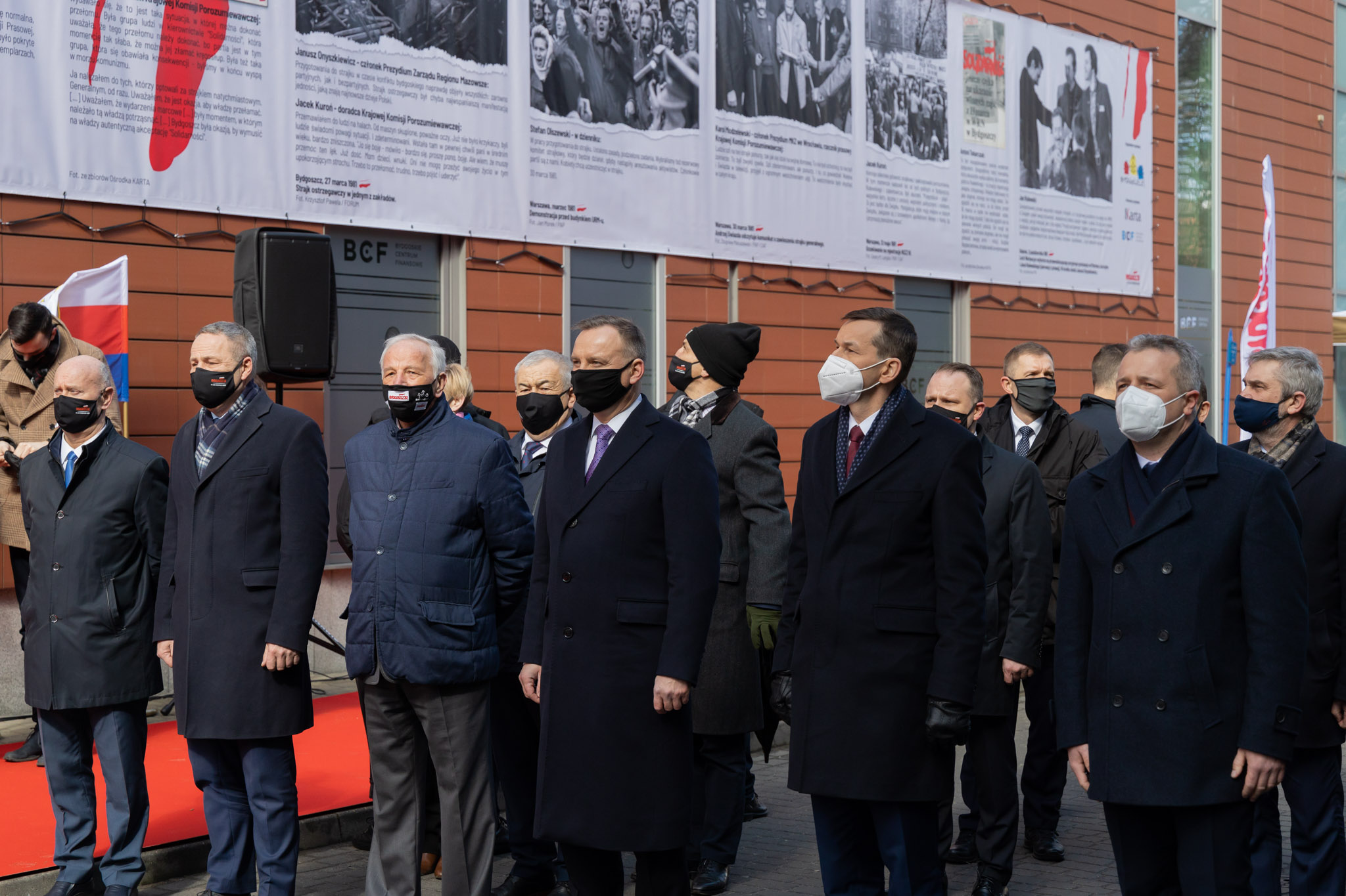 Prezydent Andrzej Duda oraz Premier Mateusz Morawiecki na uroczystościach upamiętniających wydarzenia Bydgoskiego Marca 1981