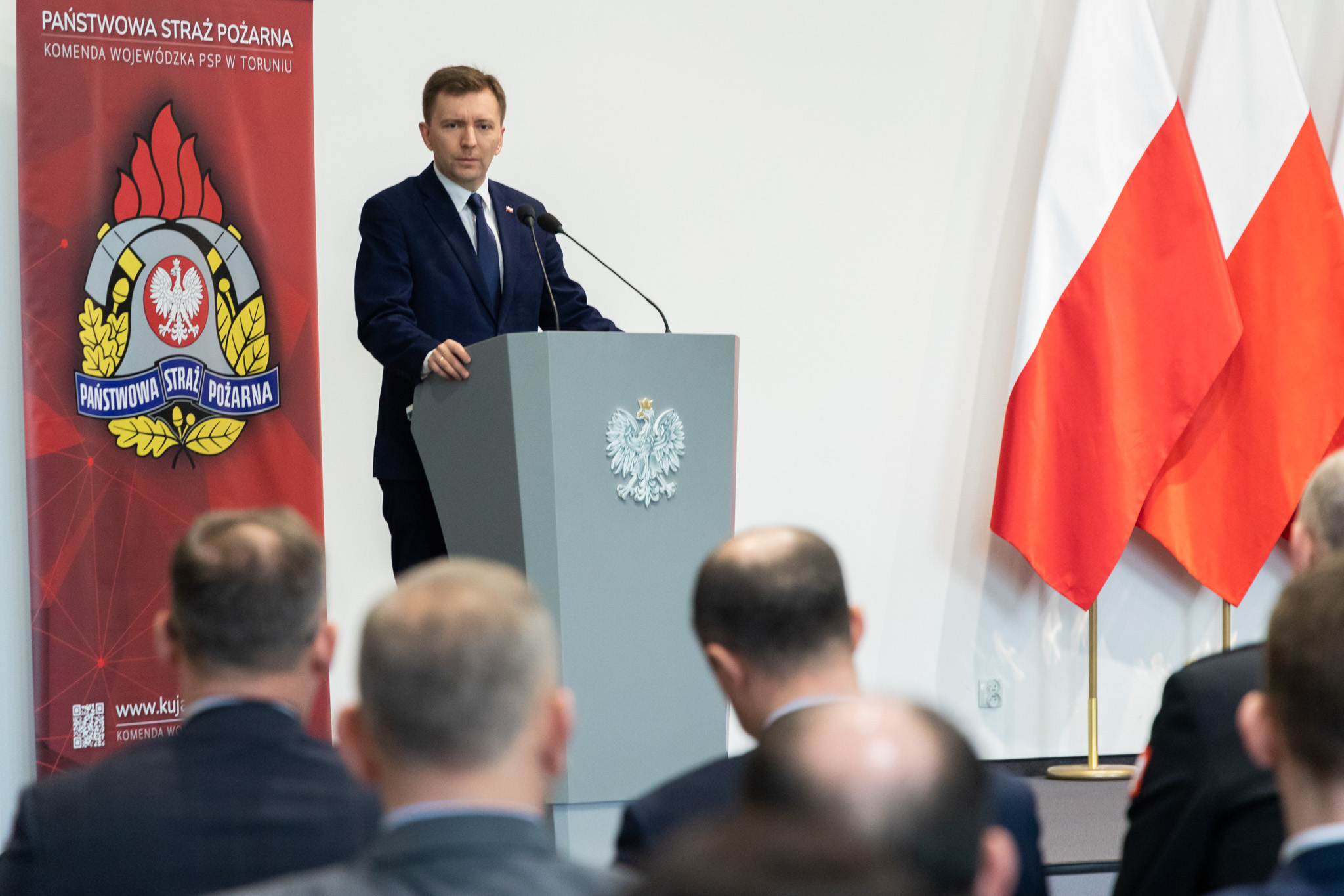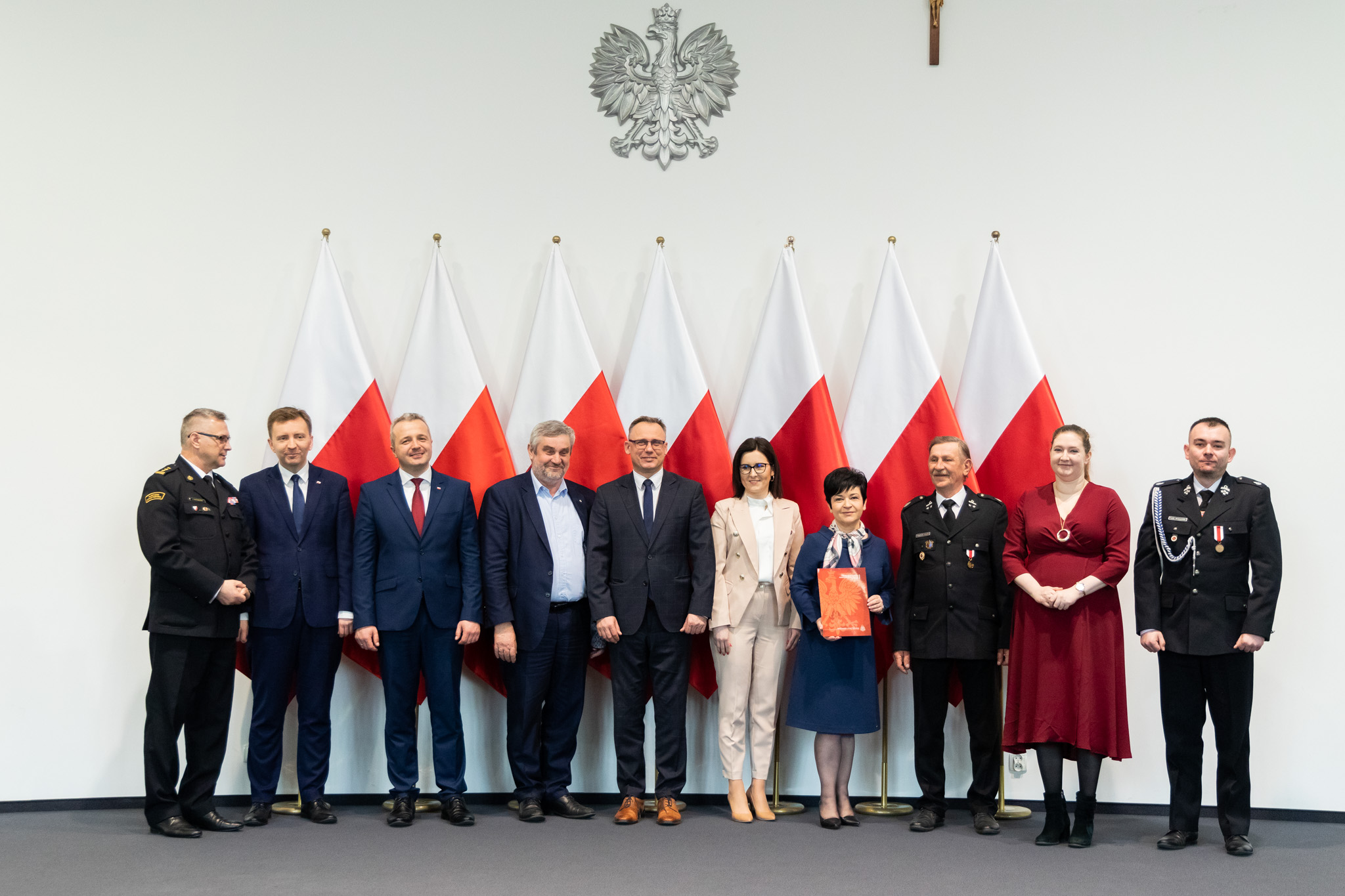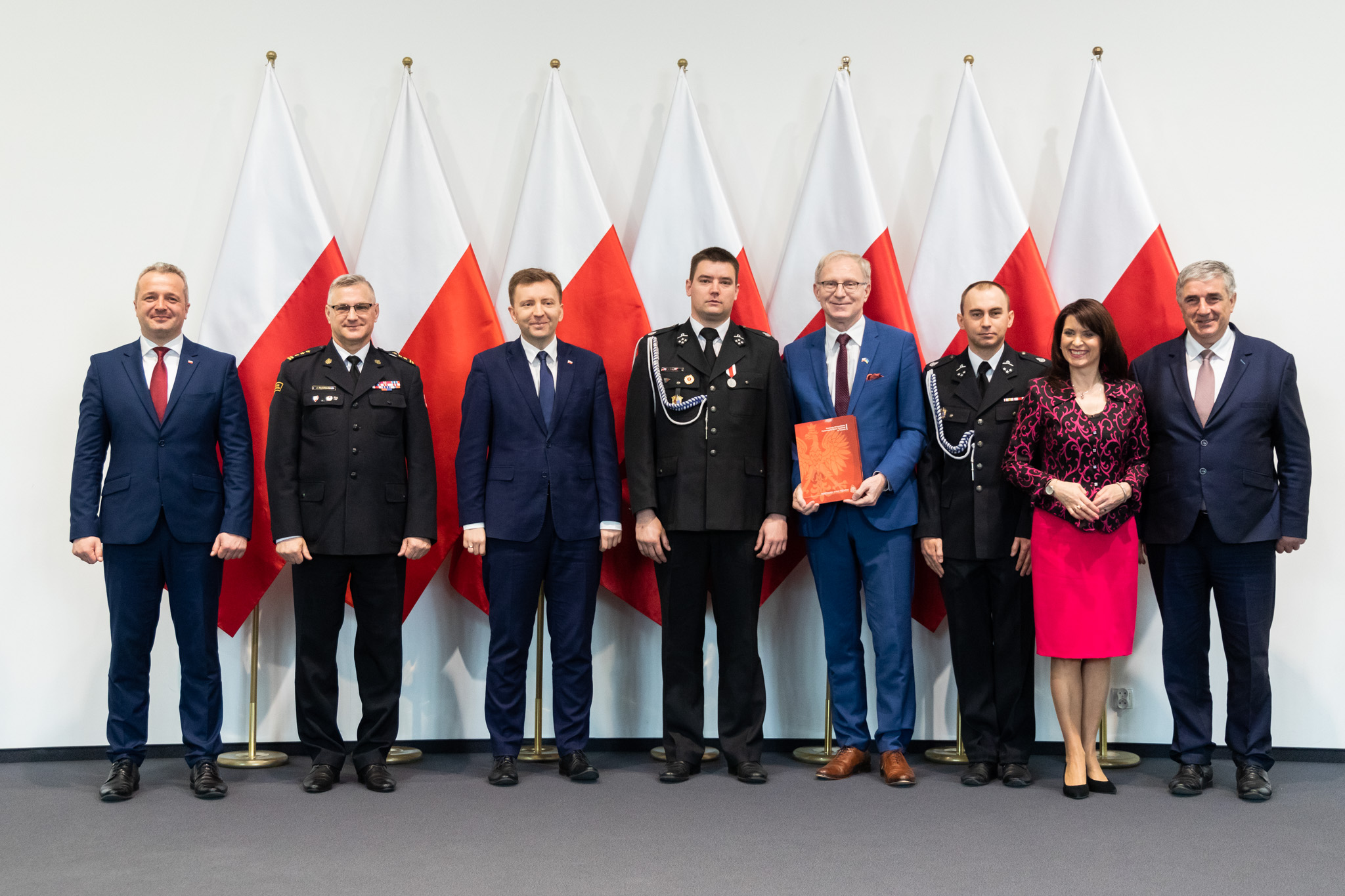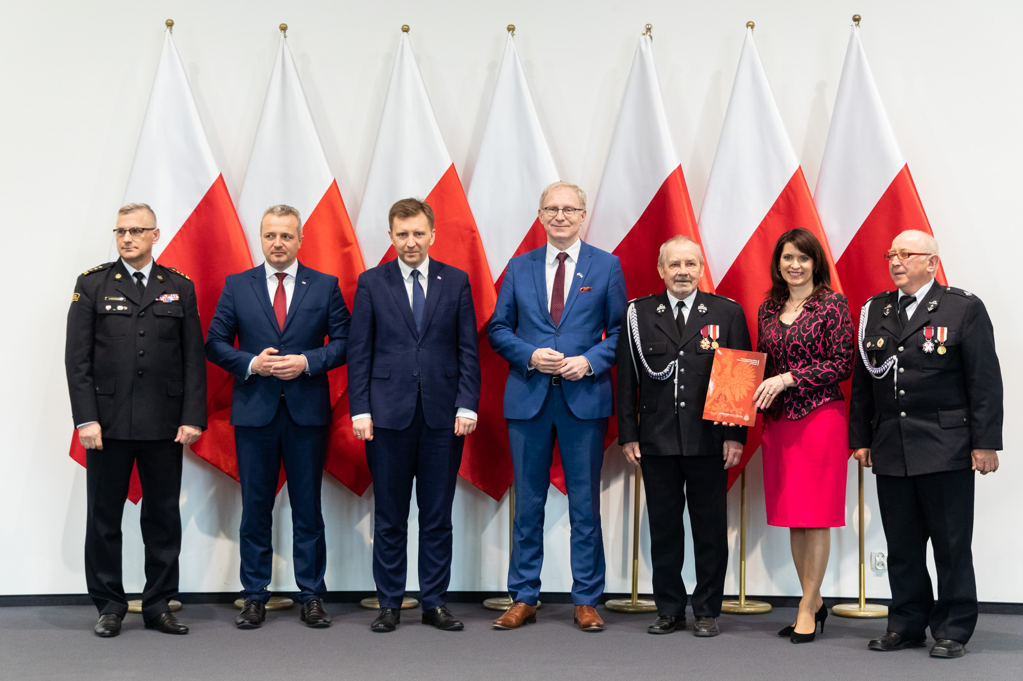 Pragnę serdecznie pogratulować oraz złożyć wyrazy głębokiej wdzięczności członkom wszystkich jednostek Ochotniczych Straży Pożarnych, których przedstawiciele są obecni podczas dzisiejszej uroczystości. Wasza misja jako wzór troski o dobro wspólne darzona jest w naszej ojczyźnie powszechnym szacunkiem. Stanowiąc symbol niezwykłego poświęcenia oraz odwagi. Za tę nieustanną gotowość do walki o ludzkie życie i mienie pragnę Wam dziś z głębi serca podziękować. W sposób szczególny zwracam się do tych z państwa, którzy odbiorą dzisiaj decyzję o przyznaniu dodatkowego świadczenia emerytalnego. Chcąc wyrazić naszą wdzięczność dla takich osób jak państwo, przygotowaliśmy w MSWiA ustawę o ochotniczych strażach pożarnych. Przewiduje ona m.in. wprowadzenie dodatku pieniężnego dla druhów z co najmniej 25-letnim stażem. Cieszę się, że to w pełni zasłużone świadczenie może być dla państwa choć skromnym podziękowaniem za poświęcenia, jakich wymagała wieloletnia służba strażaka ochotnika
