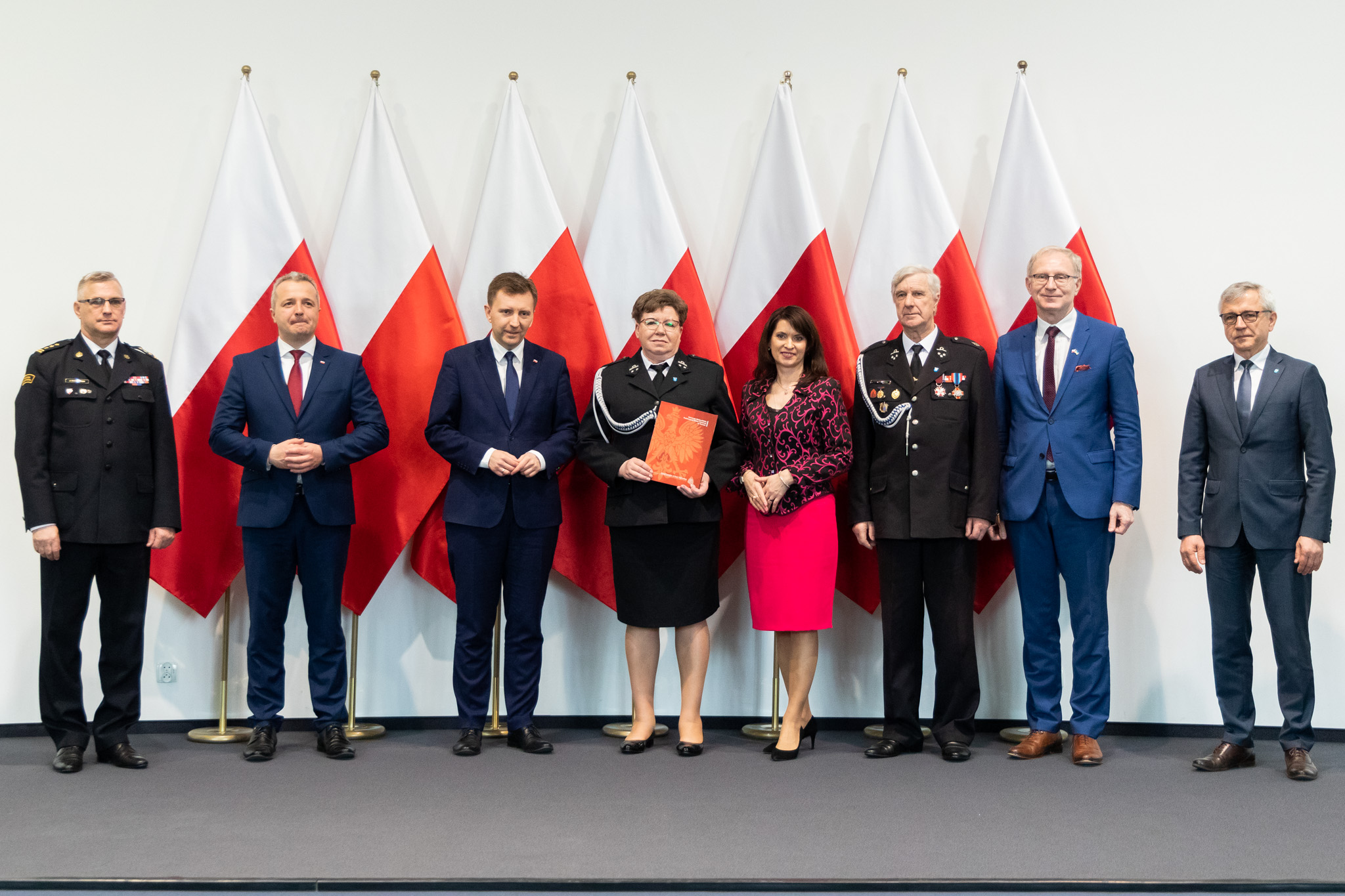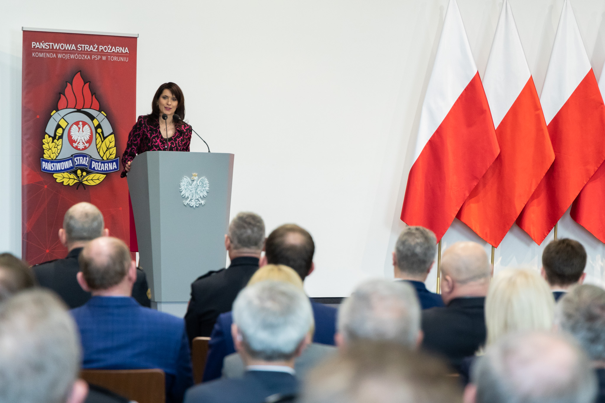 Pragnę serdecznie pogratulować oraz złożyć wyrazy głębokiej wdzięczności członkom wszystkich jednostek Ochotniczych Straży Pożarnych, których przedstawiciele są obecni podczas dzisiejszej uroczystości. Wasza misja jako wzór troski o dobro wspólne darzona jest w naszej ojczyźnie powszechnym szacunkiem. Stanowiąc symbol niezwykłego poświęcenia oraz odwagi. Za tę nieustanną gotowość do walki o ludzkie życie i mienie pragnę Wam dziś z głębi serca podziękować. W sposób szczególny zwracam się do tych z państwa, którzy odbiorą dzisiaj decyzję o przyznaniu dodatkowego świadczenia emerytalnego. Chcąc wyrazić naszą wdzięczność dla takich osób jak państwo, przygotowaliśmy w MSWiA ustawę o ochotniczych strażach pożarnych. Przewiduje ona m.in. wprowadzenie dodatku pieniężnego dla druhów z co najmniej 25-letnim stażem. Cieszę się, że to w pełni zasłużone świadczenie może być dla państwa choć skromnym podziękowaniem za poświęcenia, jakich wymagała wieloletnia służba strażaka ochotnika