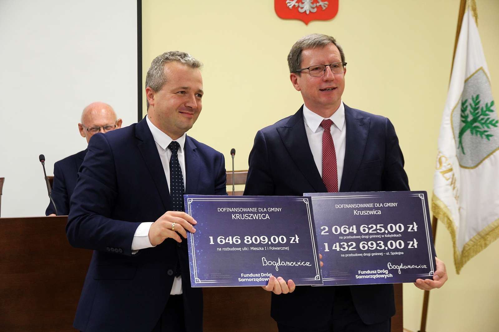 Jeden z czeków obejmuje dofinansowanie kwotą 2 064 625 zł przebudowy drogi gminnej w Kobylnikach oraz dofinansowanie kwotą 1 432 693 zł przebudowy ul. Spokojnej w Kruszwicy, drugi, na kwotę 1 646 809 zł, przeznaczony jest na wsparcie rozbudowy ulic Mieszka I oraz Folwarcznej w Kruszwicy. Dofinansowanie tego drugiego zadania jest możliwe dzięki oszczędnościom poprzetargowym.