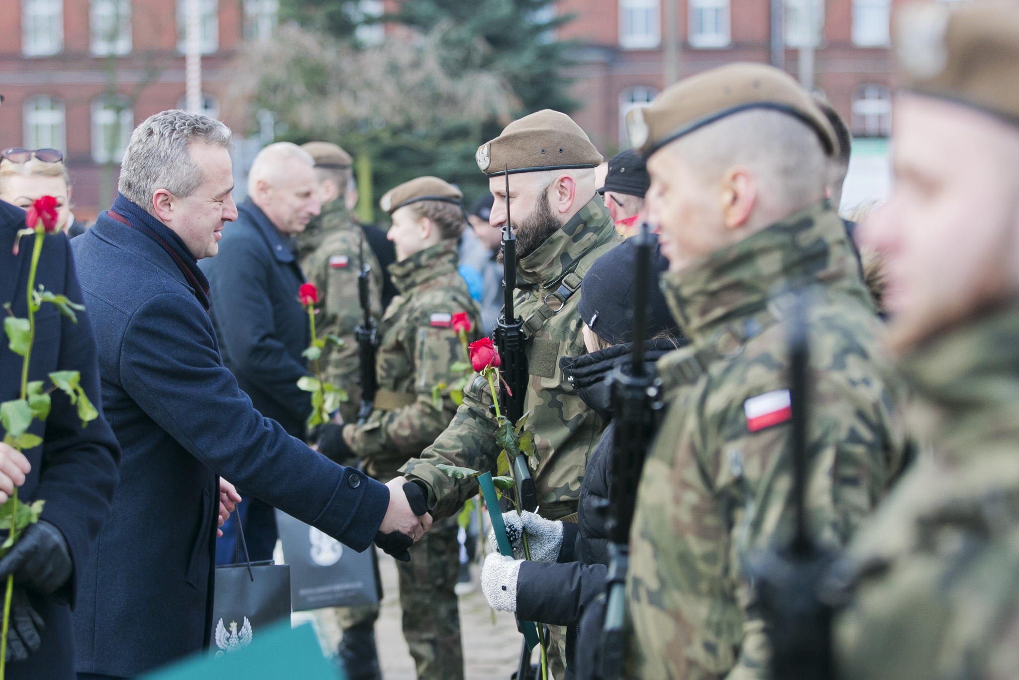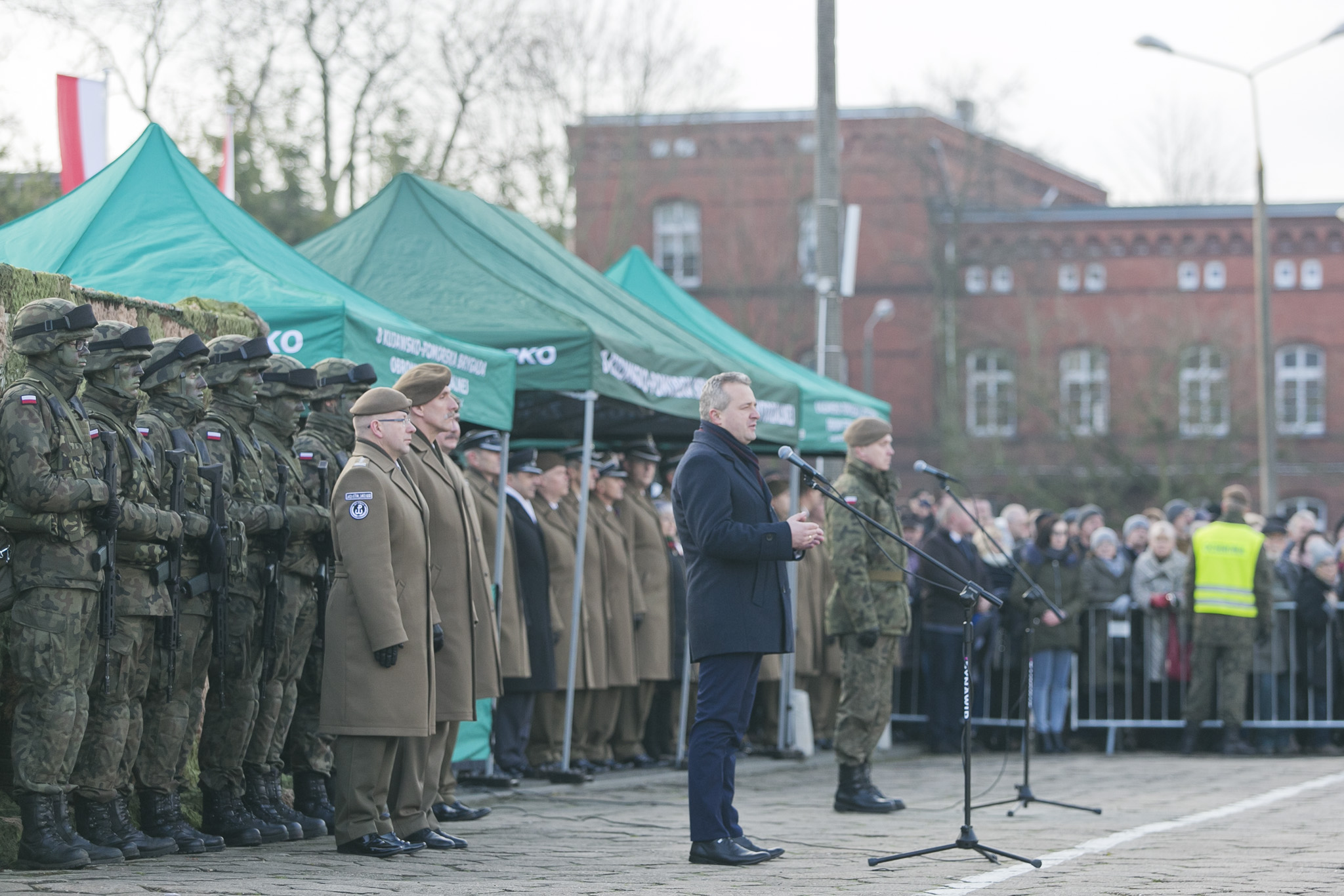 Wojewoda Mikołaj Bogdanowicz podkreślił swoją dumę, że może uczestniczyć w historycznym wydarzeniu – przysiędze wojskowej żołnierzy, których mottem jest „Zawsze gotowi, zawsze blisko”.