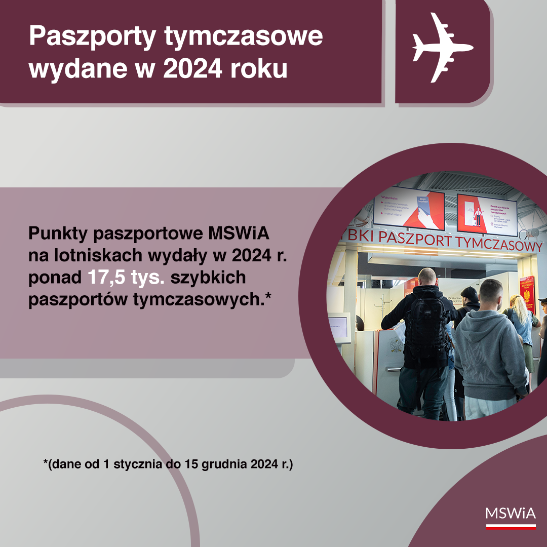 Łącznie, punkty paszportowe MSWiA na lotniskach wydały w 2024 r. dokładnie 17 544 szybkie paszporty tymczasowe (dane od 1 stycznia do 15 grudnia br.).
