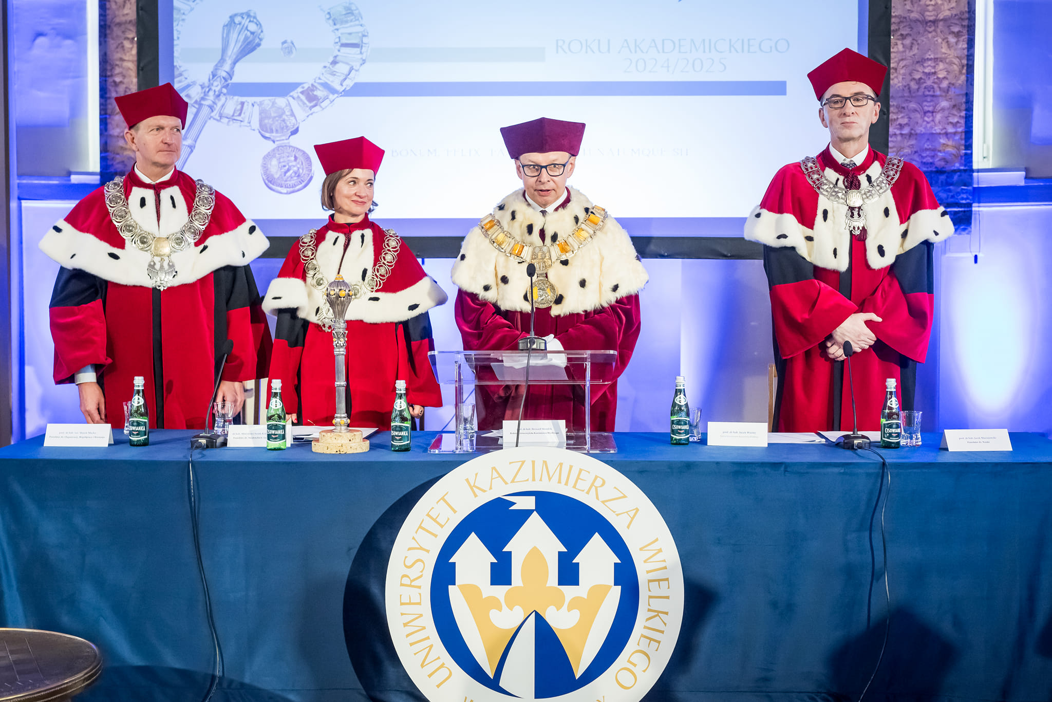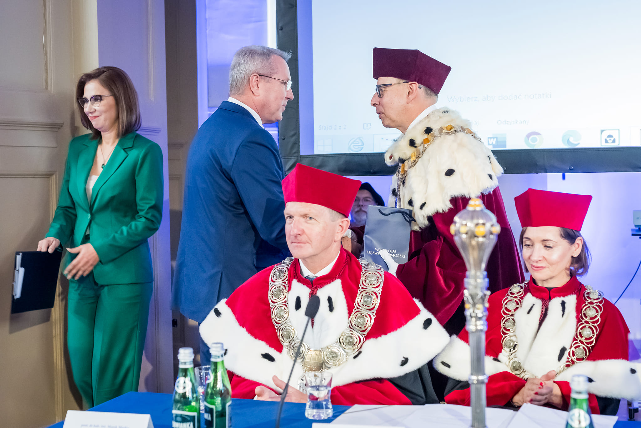 Tegoroczna inauguracja na Uniwersytecie Kazimierza Wielkiego w Bydgoszczy była połączona z uroczystym przekazaniem władzy rektorskiej. Wicewojewoda Piotr Hemmerling przekazał na ręce nowego Rektora prof. dr hab. Bernarda Mendlika symboliczne pióro z życzeniami samych mądrych i trafnych decyzji dla uczelni, całej jej społeczności i całego województwa.