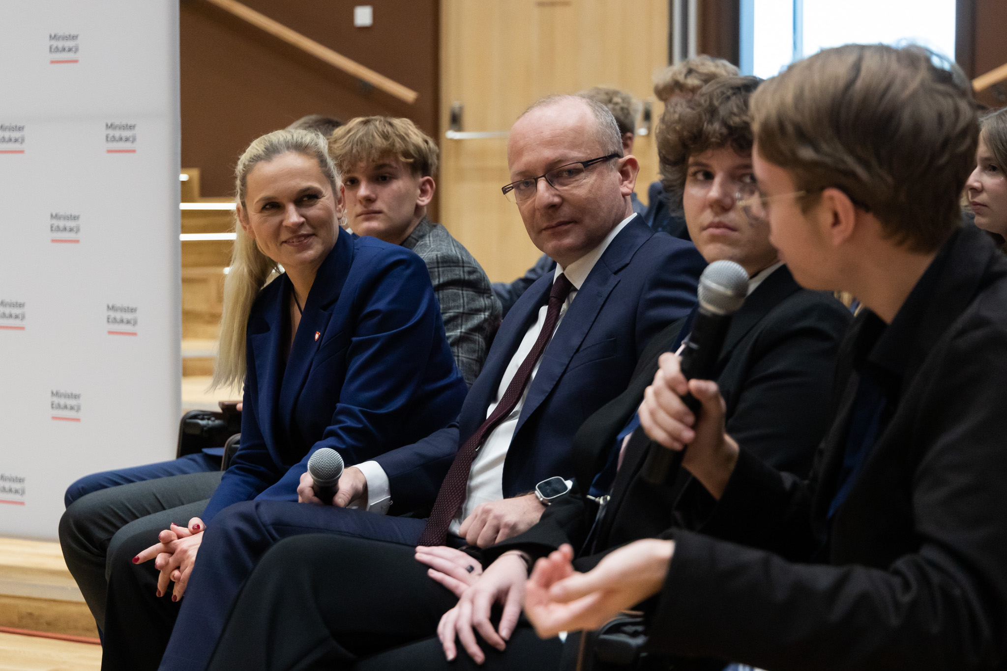 Rozmowy z młodzieżą. Ministra Edukacji Barbara Nowacka i Sekretarz Stanu w Ministerstwie Cyfryzacji Paweł Olszewski spotkali się z uczniami z szkół ponadpodstawowych z naszego regionu.