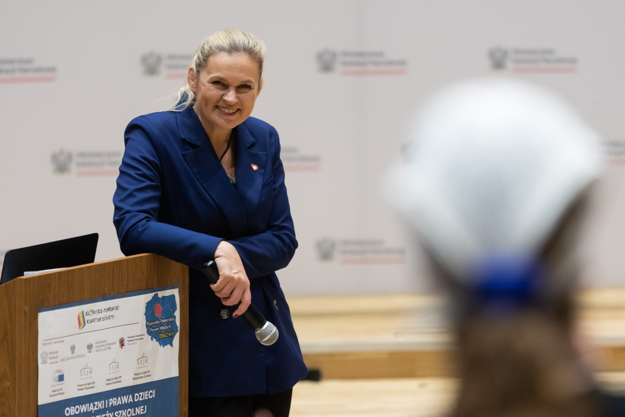 Bardzo mi zależy, żebyście byli świadomi swoich praw i obowiązków - dlatego rozpoczęły się prace nad ustawą o rzeczniku praw uczniowskich, która zawiera również w sobie komponent obowiązkowy, który będzie wspierał nauczycieli. Chciałabym, żeby to w szkołach nauczyciele byli rzecznikami praw uczniowskich