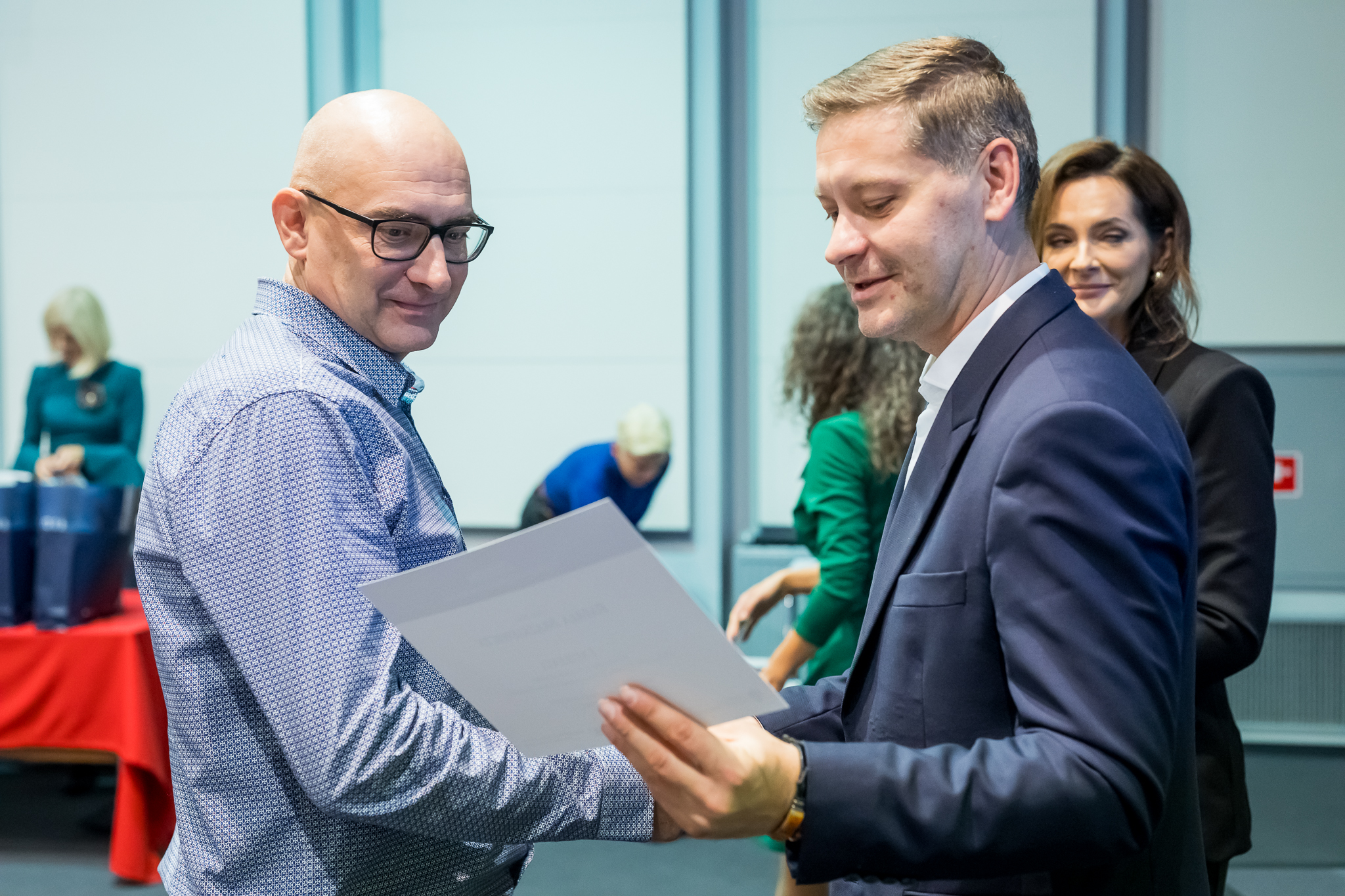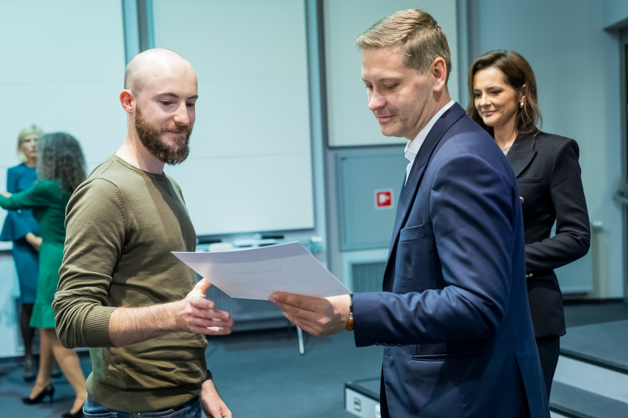 W kujawsko-Pomorskim Urzędzie Wojewódzkim Wicewojewoda Michał Koniuch wraz z Izabelą Wiśniewską z Wojewódzkiego Funduszu Ochrony Środowiska i Gospodarki Wodnej wręczył nagrody dla uczestników konkursu.