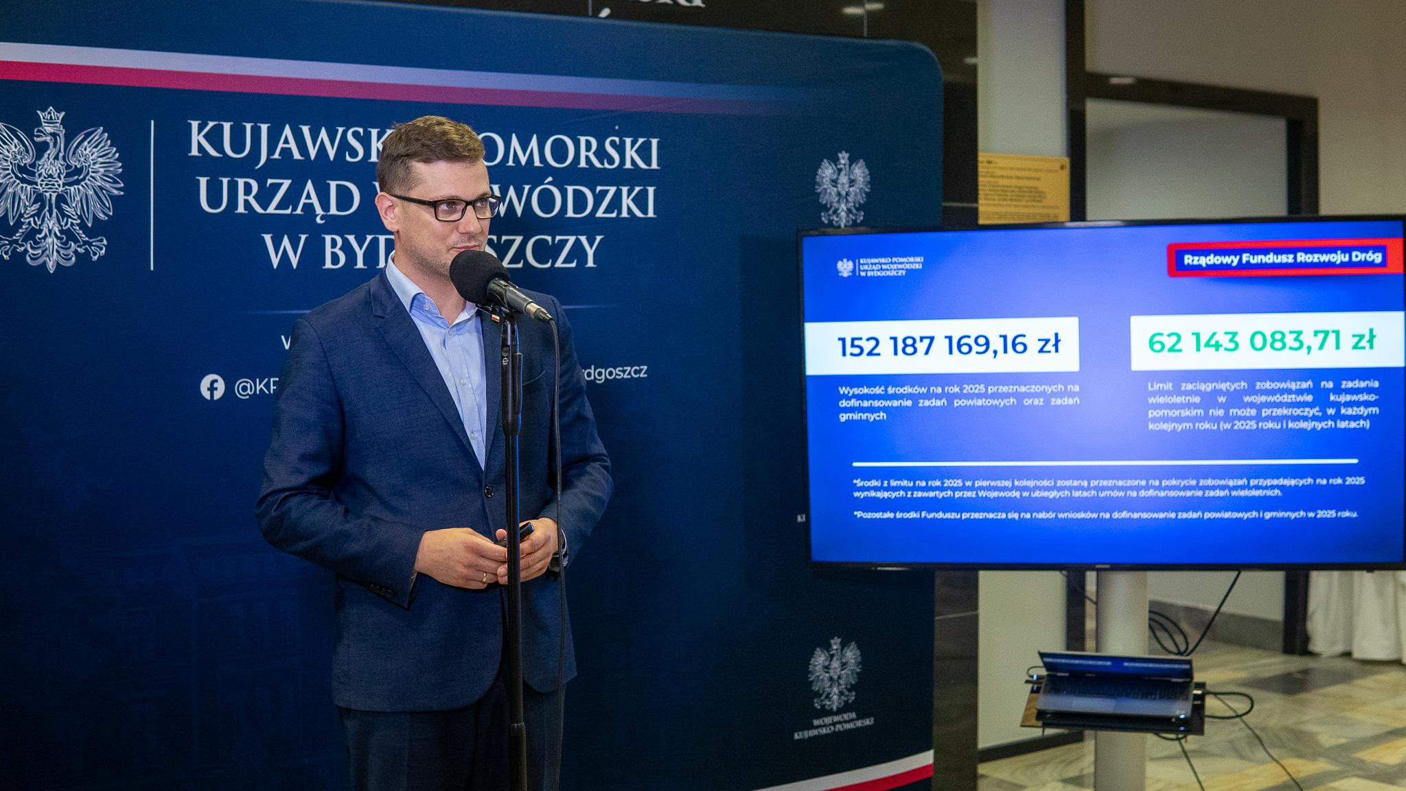 Dziś podczas konferencji prasowej Wojewoda Kujawsko-Pomorski ogłosił nowy nabór wniosków o dofinansowanie z Rządowego Funduszu Rozwoju Dróg, który wspiera budowę, rozbudowę, przebudowę oraz remonty dróg gminnych i powiatowych. W województwie kujawsko-pomorskim na 2025 rok przeznaczono 152,2 mln zł na te zadania.