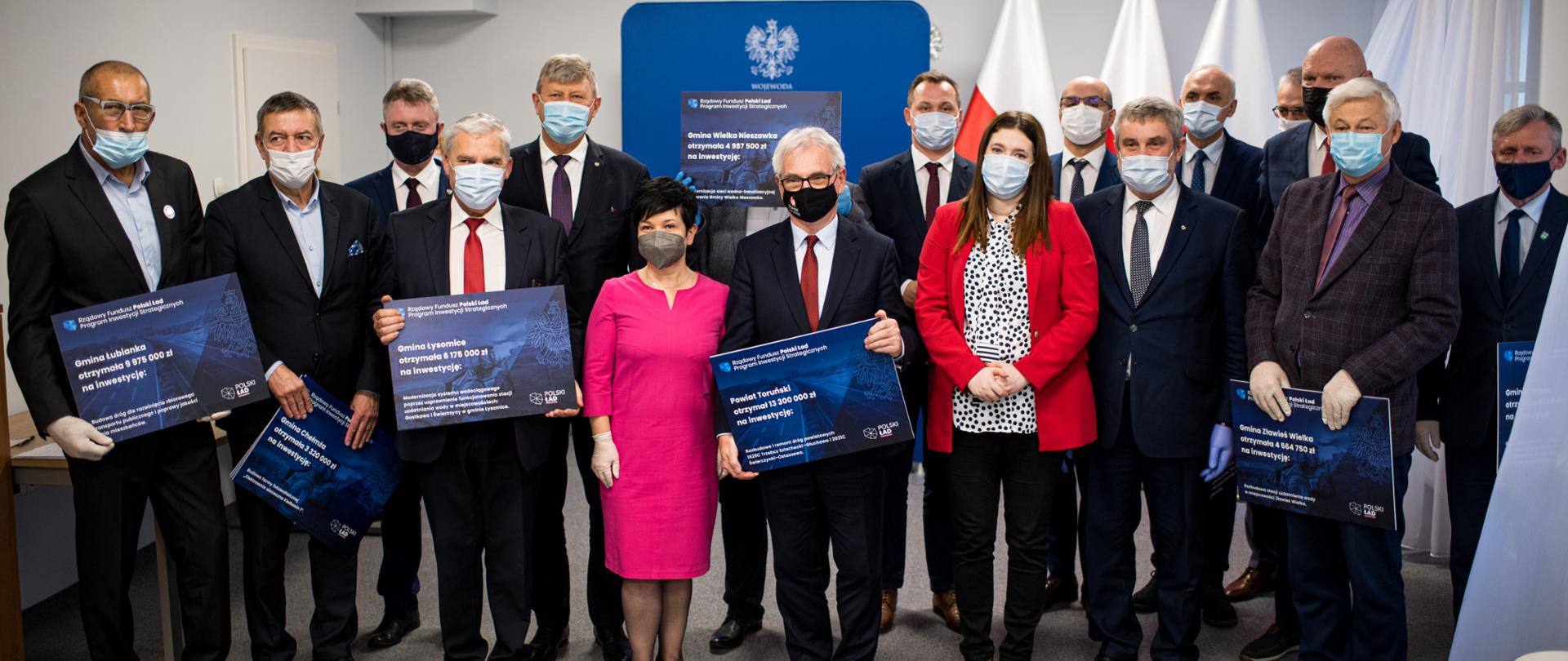 Samorządy z byłych województw toruńskiego i włocławskiego otrzymały łącznie 737 mln zł wsparcia w ramach Polskiego Ładu na realizację 140 zadań. Wicewojewoda Kujawsko-Pomorski wręczył dziś samorządowcom z tych terenów symboliczne vouchery.