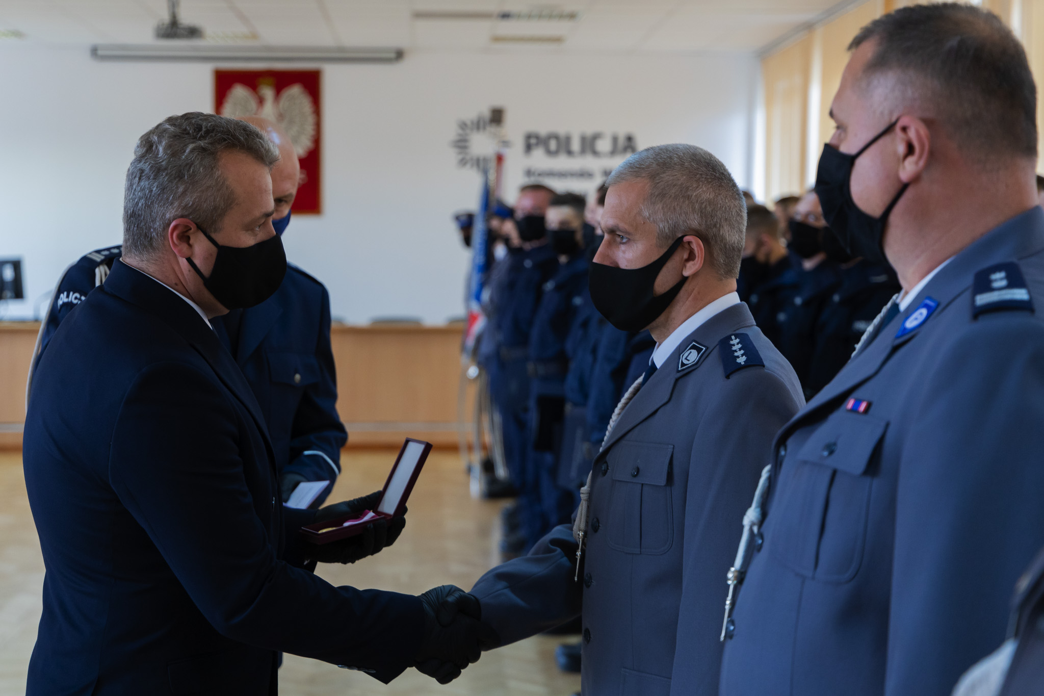 Dzisiejsza uroczystość była doskonałą okazją do gratulacji i wręczenia awansów na wyższe stanowiska i stopnie służbowe, Odznaczeń „Zasłużony Policjant” oraz Medali „Za Długoletnią Służbę”.