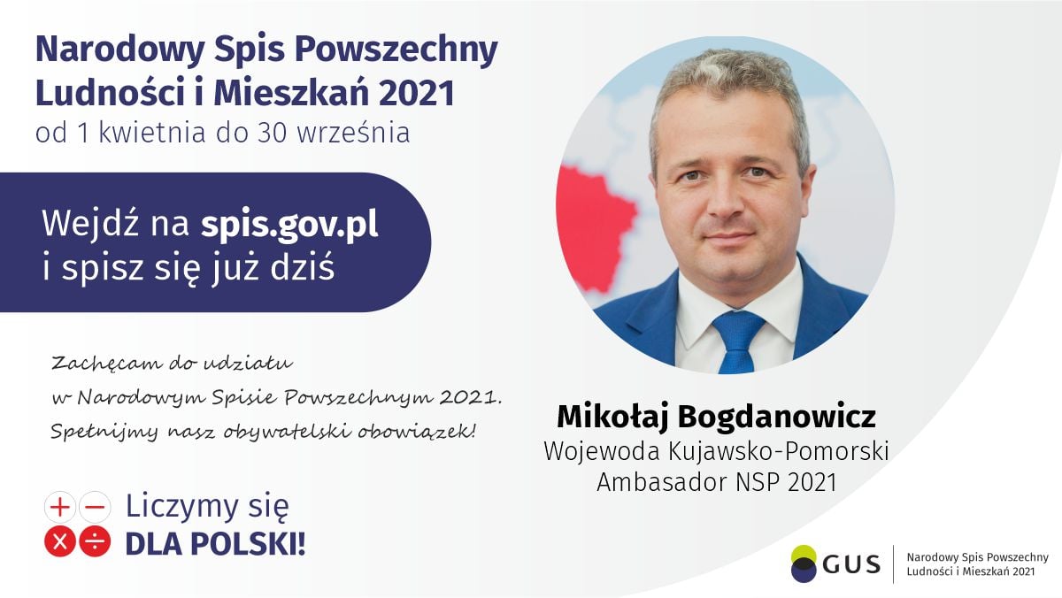 Aby zachęcić mieszkańców do udziału w badaniu ruszyła kampania #AmbasadorNSP2021. Pierwszym Ambasadorem w regionie został Wojewoda Kujawsko-Pomorski Mikołaj Bogdanowicz, który pełni również funkcję Wojewódzkiego Komisarza Spisowego.