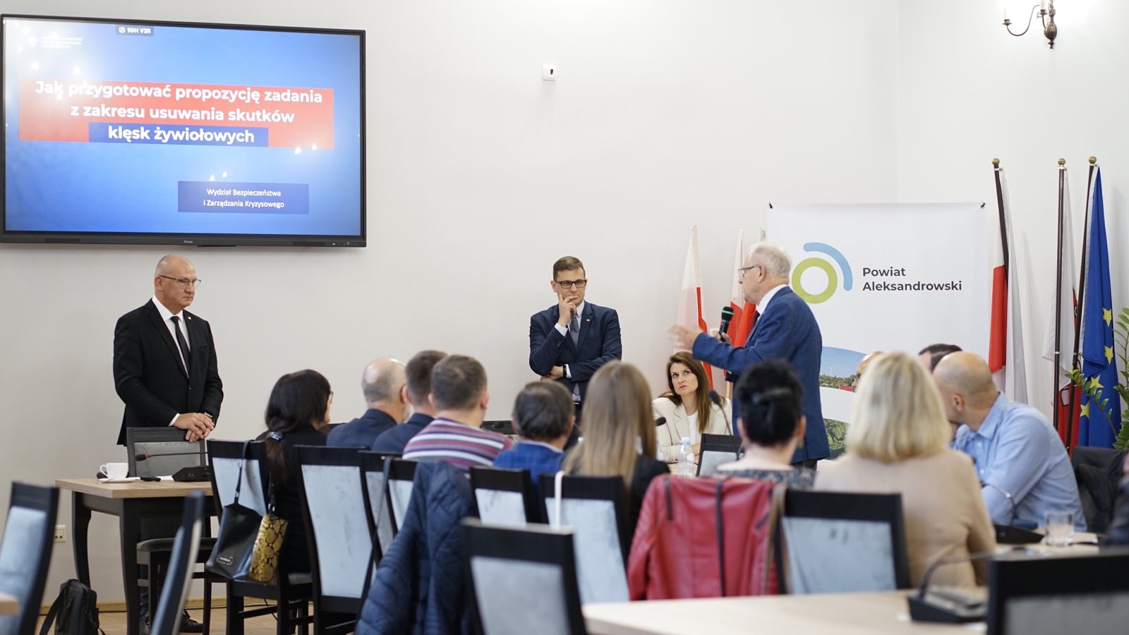 W Starostwie Powiatowym w Aleksandrowie Kujawskim odbyło się spotkanie Wojewody Kujawsko-Pomorskiego Michała Sztybla ze Starostą Aleksandrowskim Lidią Tokarską, burmistrzami, wójtami, przedstawicielami powiatowych inspekcji, służb, straży oraz pracownikami samorządowymi odpowiedzialnymi za realizację zadań zleconych, obronnych i zarządzania kryzysowego. Spotkanie było częścią cyklu, który Wojewoda zainicjował we wszystkich powiatach województwa, mającego na celu omówienie kluczowych wyzwań i problemów lokalnych administracji.