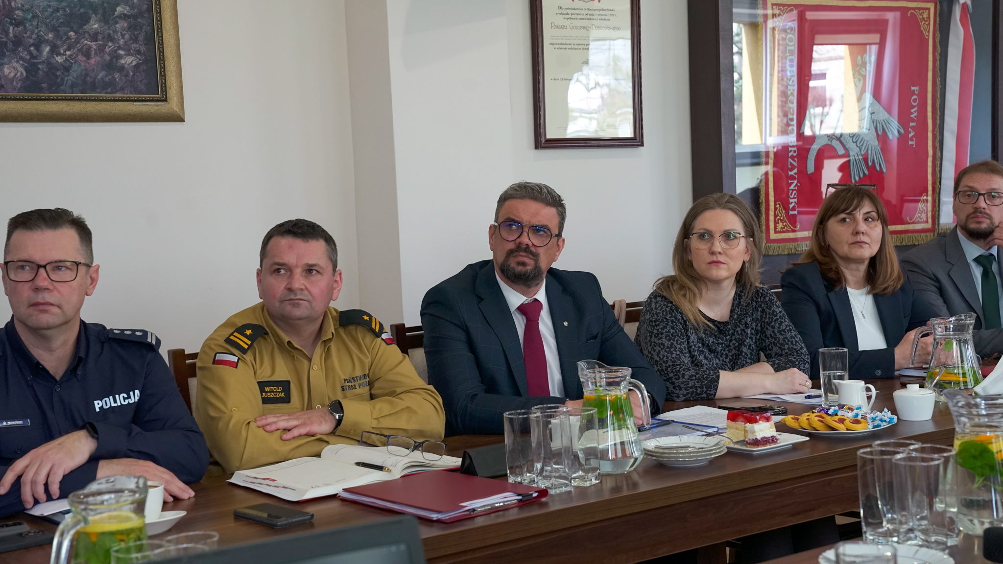 W spotkaniu uczestniczyli m.in. Starosta Golubsko-Dobrzyński Jacek Foksiński, Burmistrz Miasta Golubia-Dobrzynia Dominika Piotrowska, wójtowie i burmistrzowie gmin powiatu, a także przedstawiciele służb, inspekcji i straży oraz pracownicy odpowiedzialni za zadania z zakresu obronności i zarządzania kryzysowego.