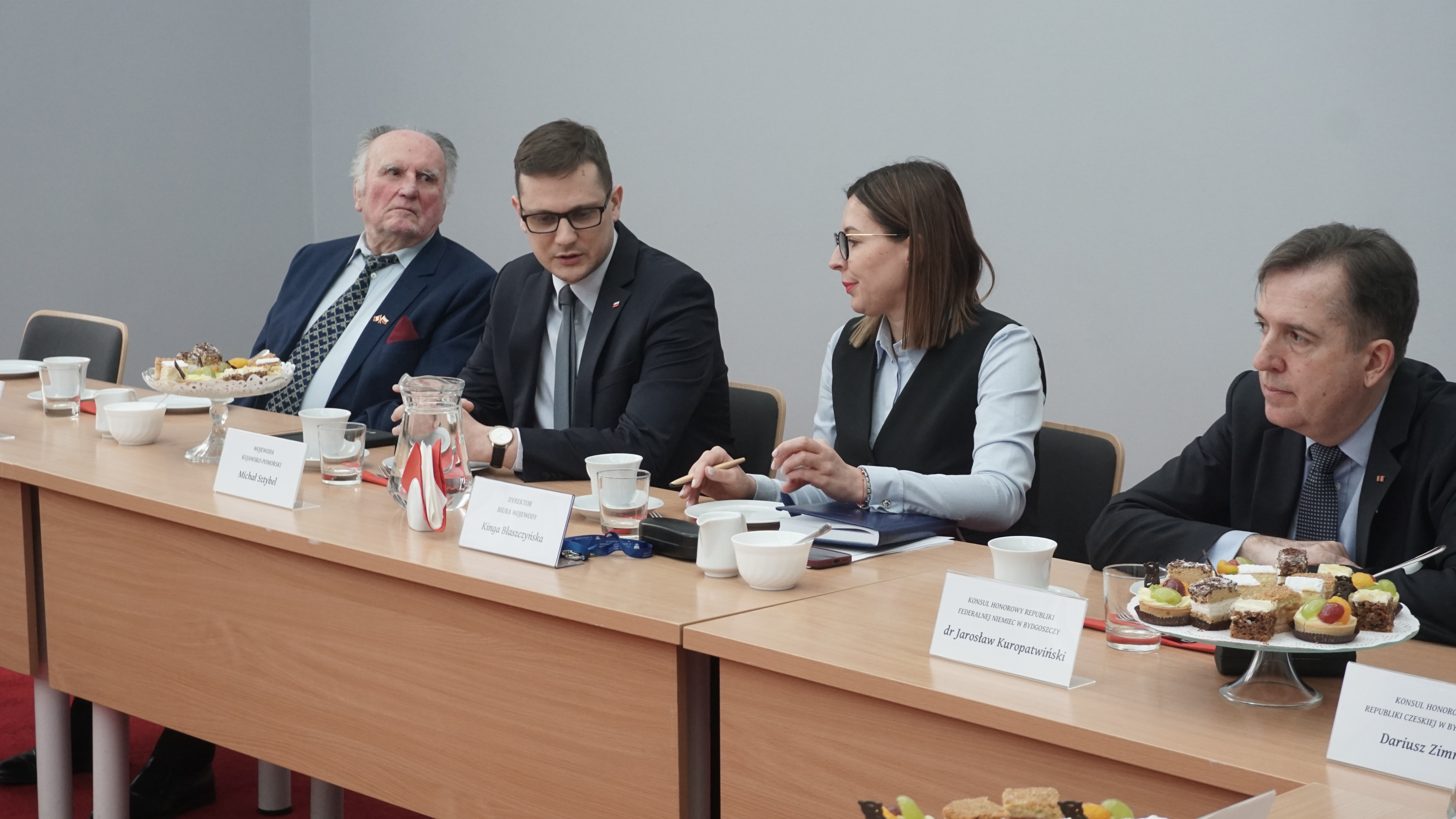 Dziś odbyło się spotkanie Wojewody Kujawsko-Pomorskiego Michała Sztybla z Konsulami Honorowymi województwa kujawsko-pomorskiego, podczas którego omówiono aktualne problemy i wyzwania w sferze gospodarki, sytuacji cudzoziemców oraz bieżącej współpracy na terenie województwa.
