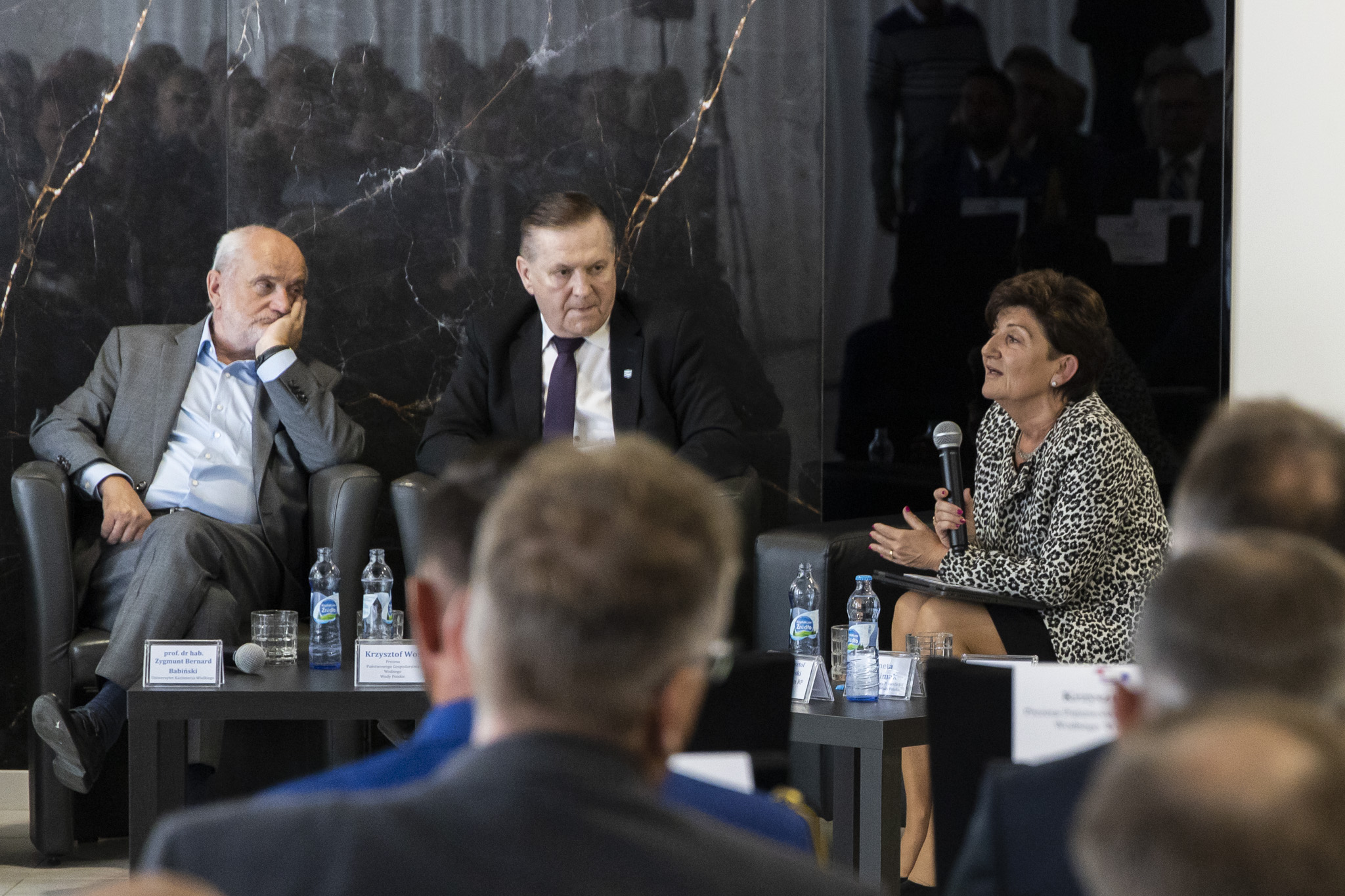 Następnie Prezes PGW Wody Polskie Krzysztof Woś omówił kwestie dotyczące Kaskady Dolnej Wisły i perspektywy budowy stopnia wodnego w Siarzewie. Po prezentacji odbył się panel dyskusyjny pt. „Czy stać nas na bierność w gospodarce wodnej?”, moderowany przez Żanetę Marciniak - Zastępcę Dyrektora Projektu SW Siarzewo, PGW Wody Polskie. Jako paneliści wystąpili: Jan Krzysztof Ardanowski - Poseł na Sejm RP i Przewodniczący Rady do spraw Rolnictwa i Obszarów Wiejskich przy Prezydencie RP, Krzysztof Woś, Prezes PGW Wody Polskie, prof. dr hab. Zygmunt Bernard Babiński, Uniwersytet Kazimierza Wielkiego, dr inż. Łukasz Weber, specjalista ds. inżynierii środowiska, dr inż. Jarosław Tomalik, Prezes Hydroergia sp. z o.o. i Maria Stępniewska, Dyrektor Pionu Biznesu Orlen Neptun Sp. z o.o.