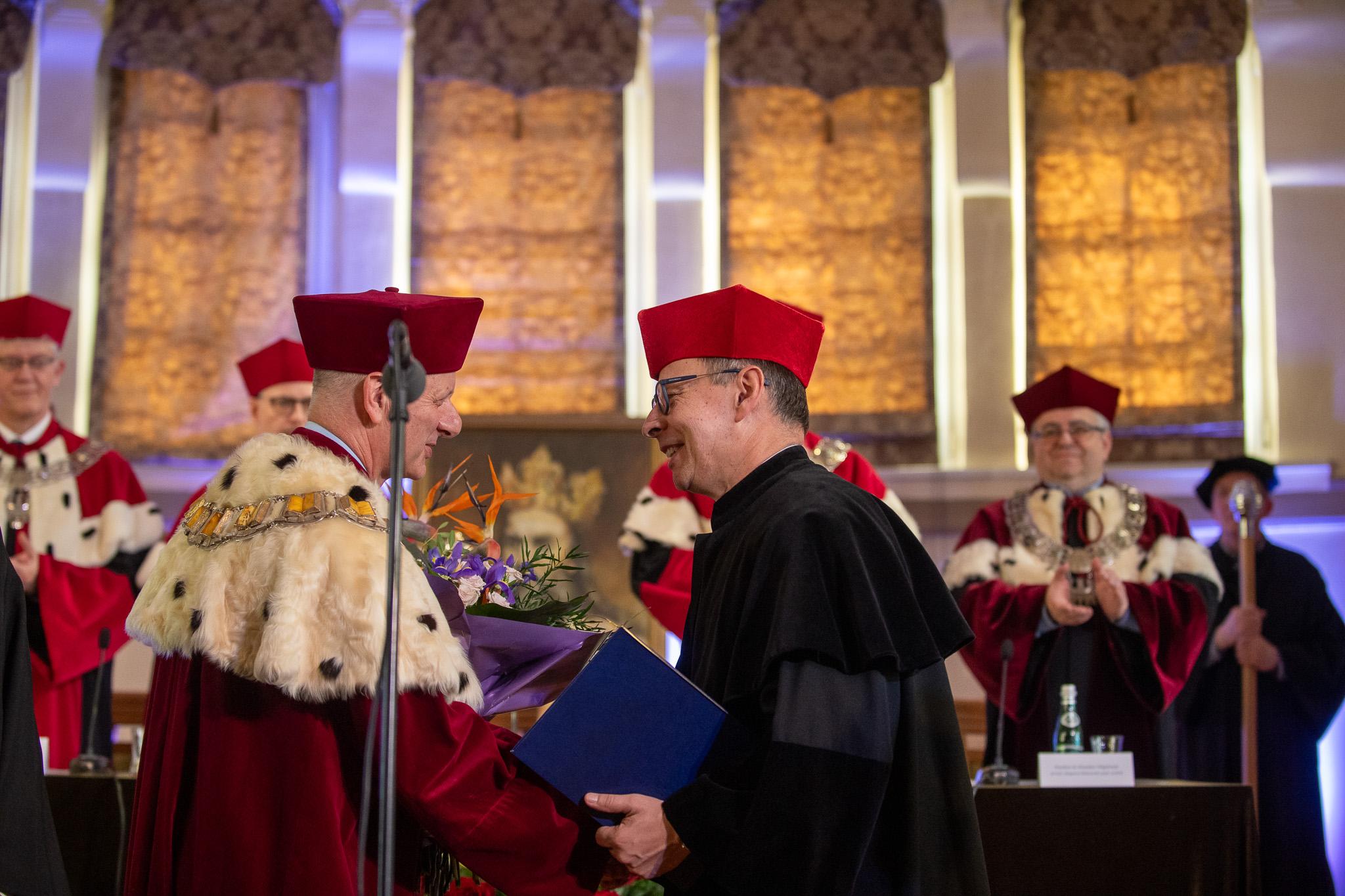 Uroczystość ta była także okazją do wręczenia nagród i wyróżnień dla pracowników oraz studentów, którym nadano 45 promocji doktorskich.