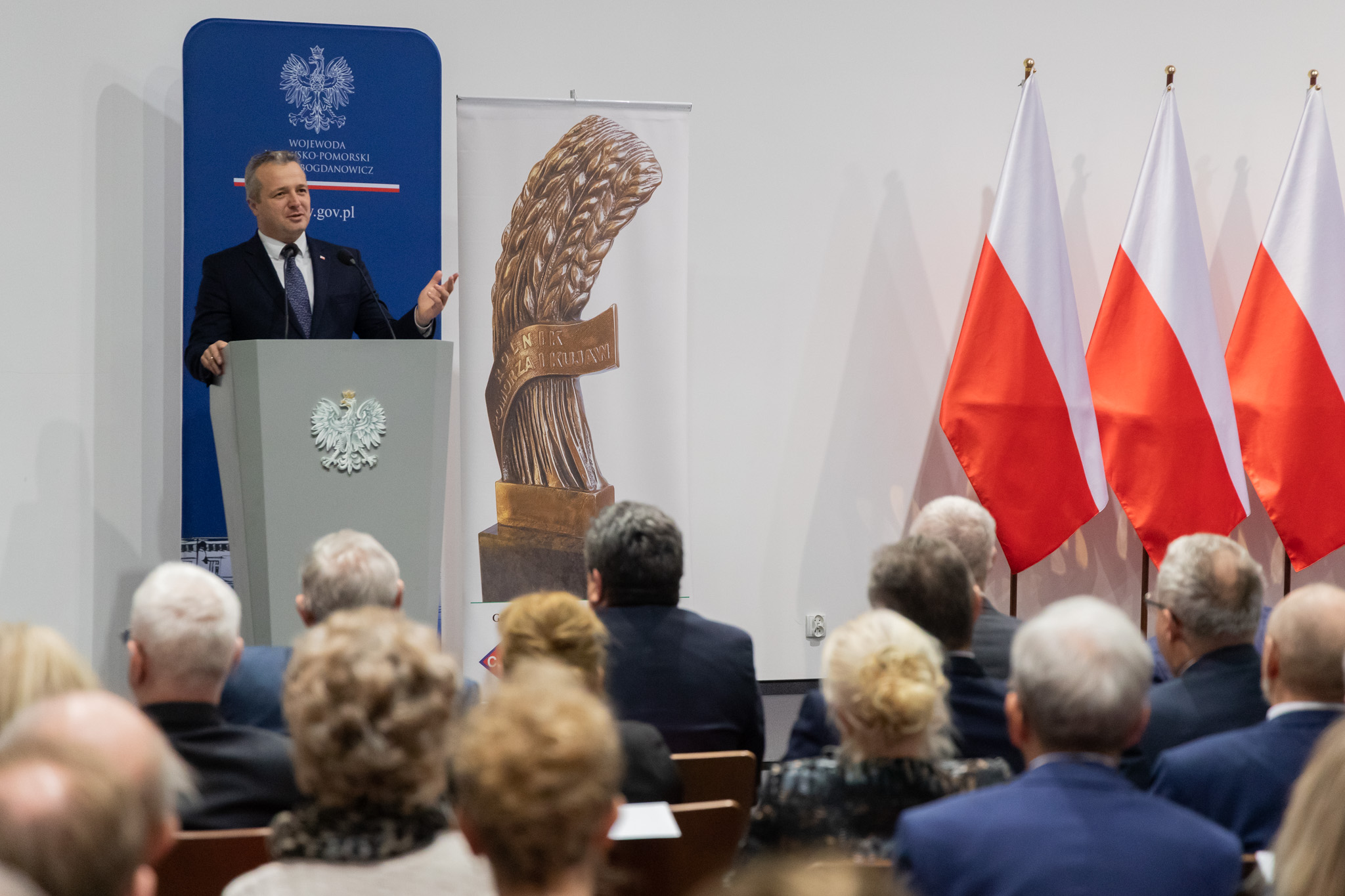 Uroczystość zorganizowana została w sali konferencyjnej im. Bydgoskiego Marca 1981 w urzędzie wojewódzkim, a więc w miejscu, gdzie 41 lat temu solidarność robotnicza wstawiła się za rolnikami, co podkreślił wojewoda. Mikołaj Bogdanowicz przypomniał również takie wydarzenia ostatnich lat jak m.in. nawałnica, susza, czy ptasia grypa z którymi rolnicy z regionu musieli się mierzyć. Kryzys energetyczny, bardzo potrzebne dopłaty do nawozów, sytuacja ma Ukrainie, to wydarzenia ostatnich miesięcy, które również miały ogromny wpływ na rolnictwo. Wojewoda wręczył odznaczenia państwowe i resortowe zasłużonym rolnikom, podkreślając i dziękując za ich zasługi. Za wiele lat pracy i zaangażowania reprezentant rządu w terenie podziękował również Zofii Kozłowskiej, przewodniczącej kapituły konkursu "Rolnik Pomorza i Kujaw".