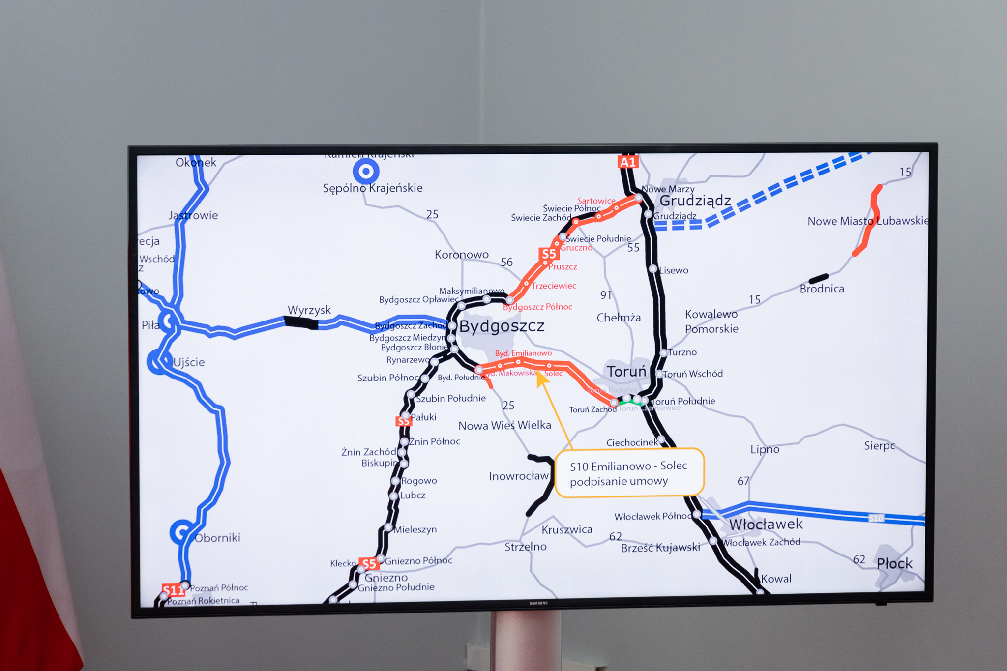 Generalna Dyrekcja Dróg Krajowych i Autostrad podpisała umowę na projekt i budowę drogi ekspresowej S10 Emilianowo - Solec. To trzecia umowa na wykonanie, podzielonej na cztery odcinki realizacyjne, S10 Bydgoszcz - Toruń. Firma POLAQUA z Piaseczna zaprojektuje i zbuduje odcinek o długości 8,6 km. Wartość umowy to niemal 240 mln zł.