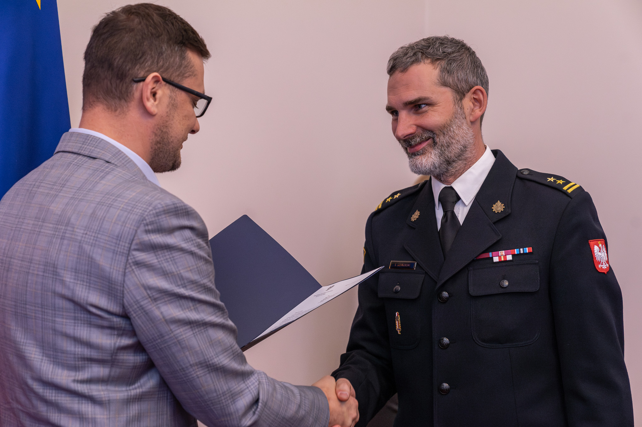 Środki te zostają w powiatach, w samorządach. Dzięki nim zostaną zakupione auta gaśnicze z funkcją dostarczania wody bytowej, auta do ewakuacji i logistyki, czyli takie, które będą mogły w bezpieczny sposób przewieść dużą liczbę osób lub zasoby. Nowością są elementy balistyczne, czyli hełmy i tarcze, które mają zapewnić bezpieczeństwo ratownikom