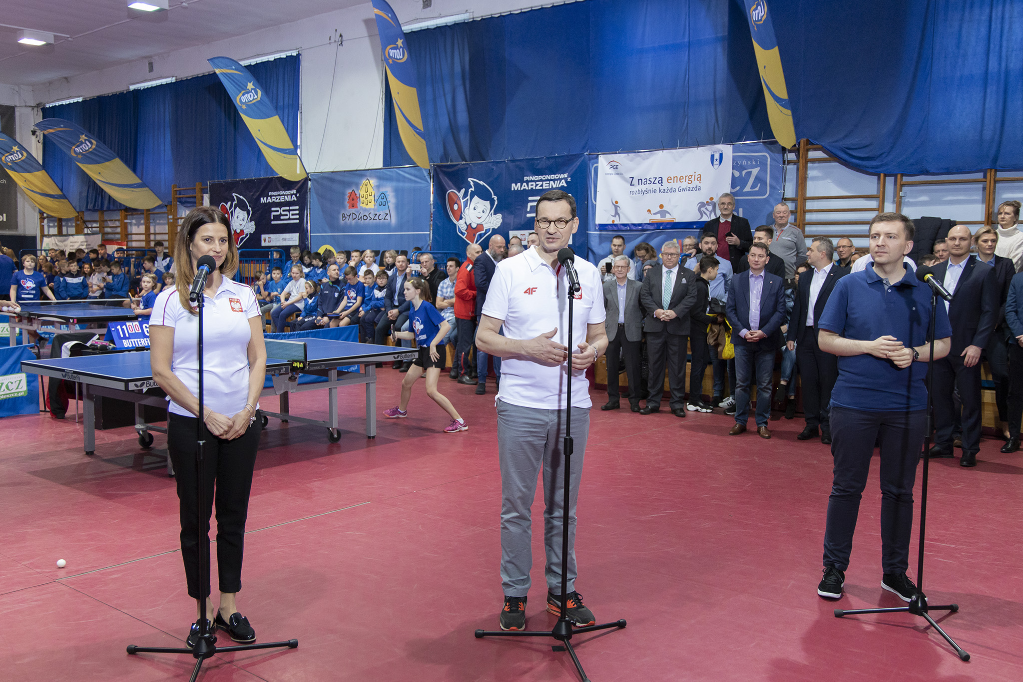 Pierwszym punktem wizyty Szefa rządu w kujawsko-pomorskim było spotkanie z zawodnikami najstarszego klubu sportowego w mieście Gwiazdy Bydgoszcz. Premier wziął udział w treningu otwartym i zapowiedział wsparcie dla Polskiego Związku Tenisa Stołowego, z którego skorzysta również bydgoska Gwiazda. Blisko 725 tys. złotych trafi do 70 klubów w całej Polsce. Środki pochodzą z rządowego programu „Sport wszystkich dzieci”.