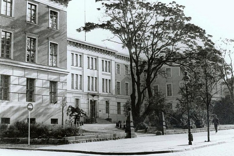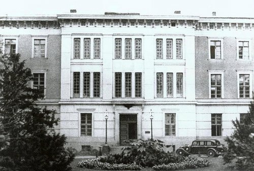 Gmach wzniesiony został w latach 1834-1836, według projektu wykonanego przez Oberbaudeputation (Wyższa Deputacja Budowlana) w Berlinie, kierowaną w tym czasie przez Karola Fryderyka Schinkla* - jednego z wybitniejszych architektów okresu neoklasycyzmu w Prusach. Kierownikiem budowy był ówczesny radca regencyjny Obuch.