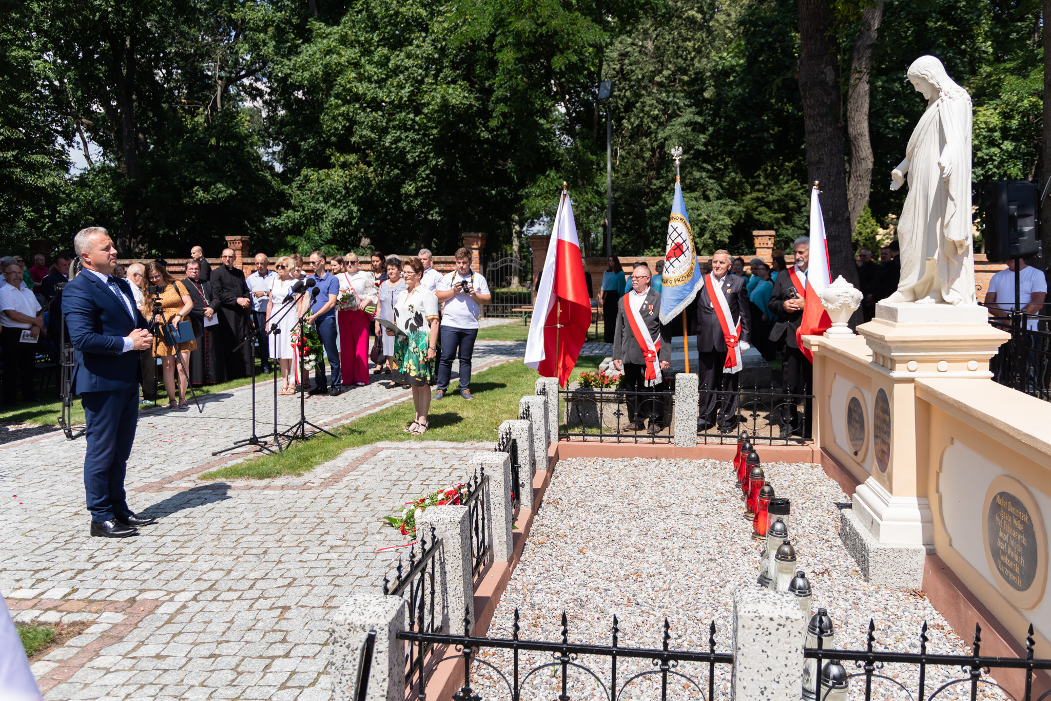 Obchody rozpoczęły się Mszą Świętą pod przewodnictwem arcybiskupa Jana Romeo Pawłowskiego w kościele parafialnym. Przy świątyni znajduje się zbiorowy grób Powstańców Wielkopolskich poległych za Ojczyznę. Pomnik-Mogiła powstał w 1922 r. dzięki zabiegom lokalnych środowisk. Podczas okupacji monument został zdewastowany przez Niemców, odbudowano go w późniejszych latach.