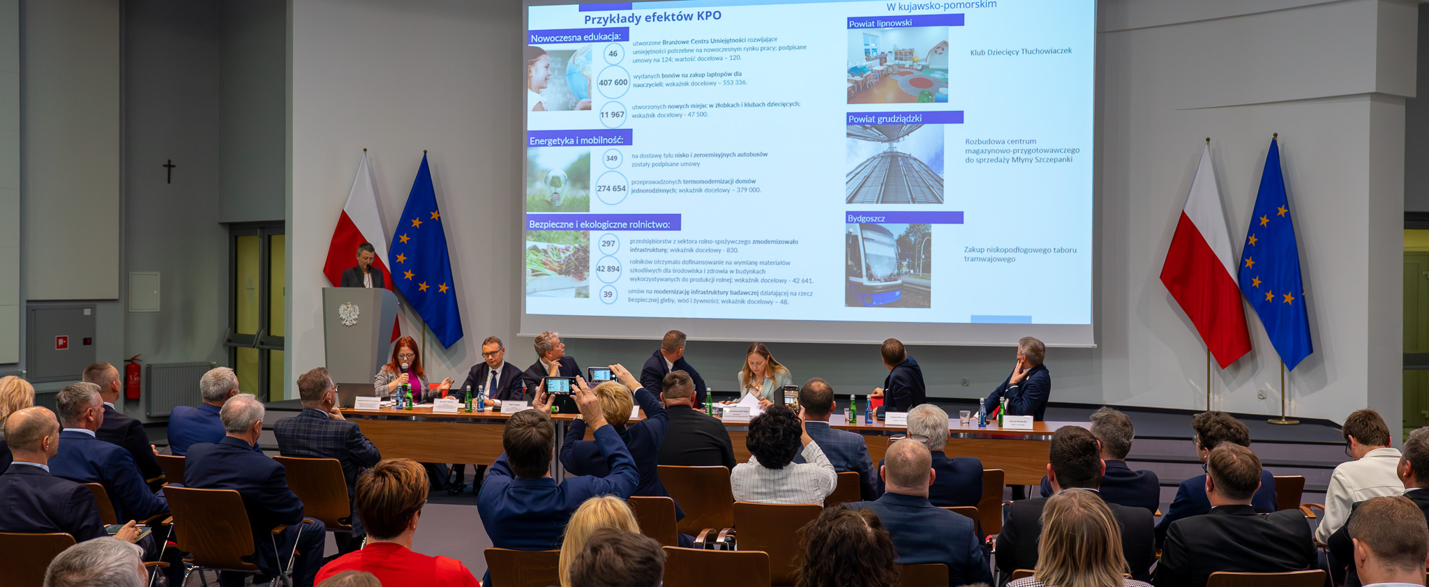 Do tej pory, w ramach KPO, województwo kujawsko-pomorskie otrzymało kwotę blisko 4 mld zł, z czego ponad 1,3 mld trafiło do samorządów. Środki te zostały przeznaczone na wsparcie m. in. nowoczesnej edukacji, energetyki i mobilności, bezpiecznego i ekologicznego rolnictwa.